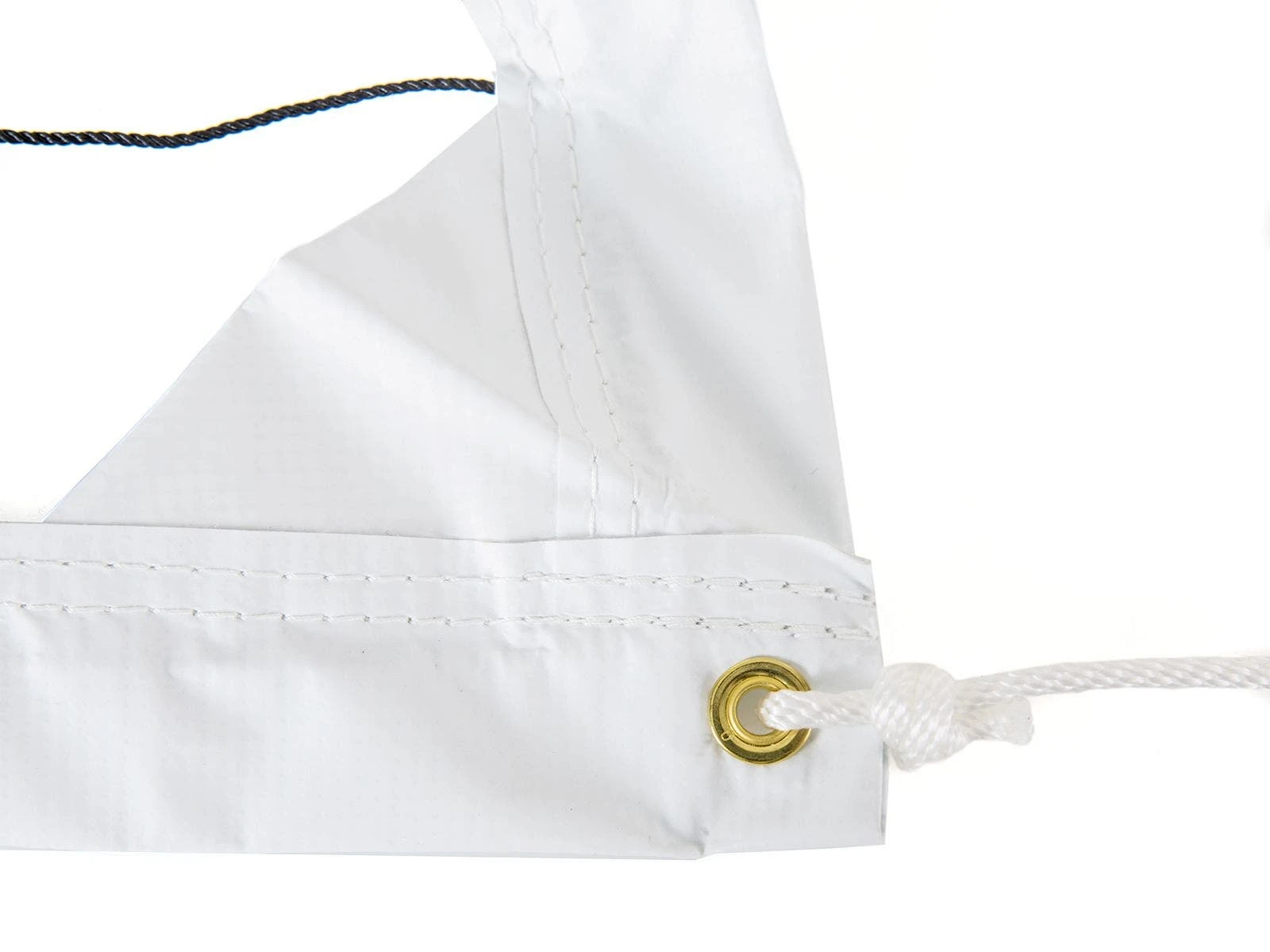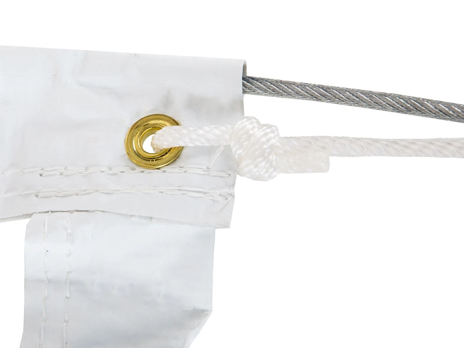 A snap lock keeps the net in place, while strong plastic buckles hold up to tension and ball impact. The top and bottom of the net look just like a typical volleyball net, with the top connected using a cable and the bottom connected using a durable rope. Top cable is coated for safety and provides added durability.