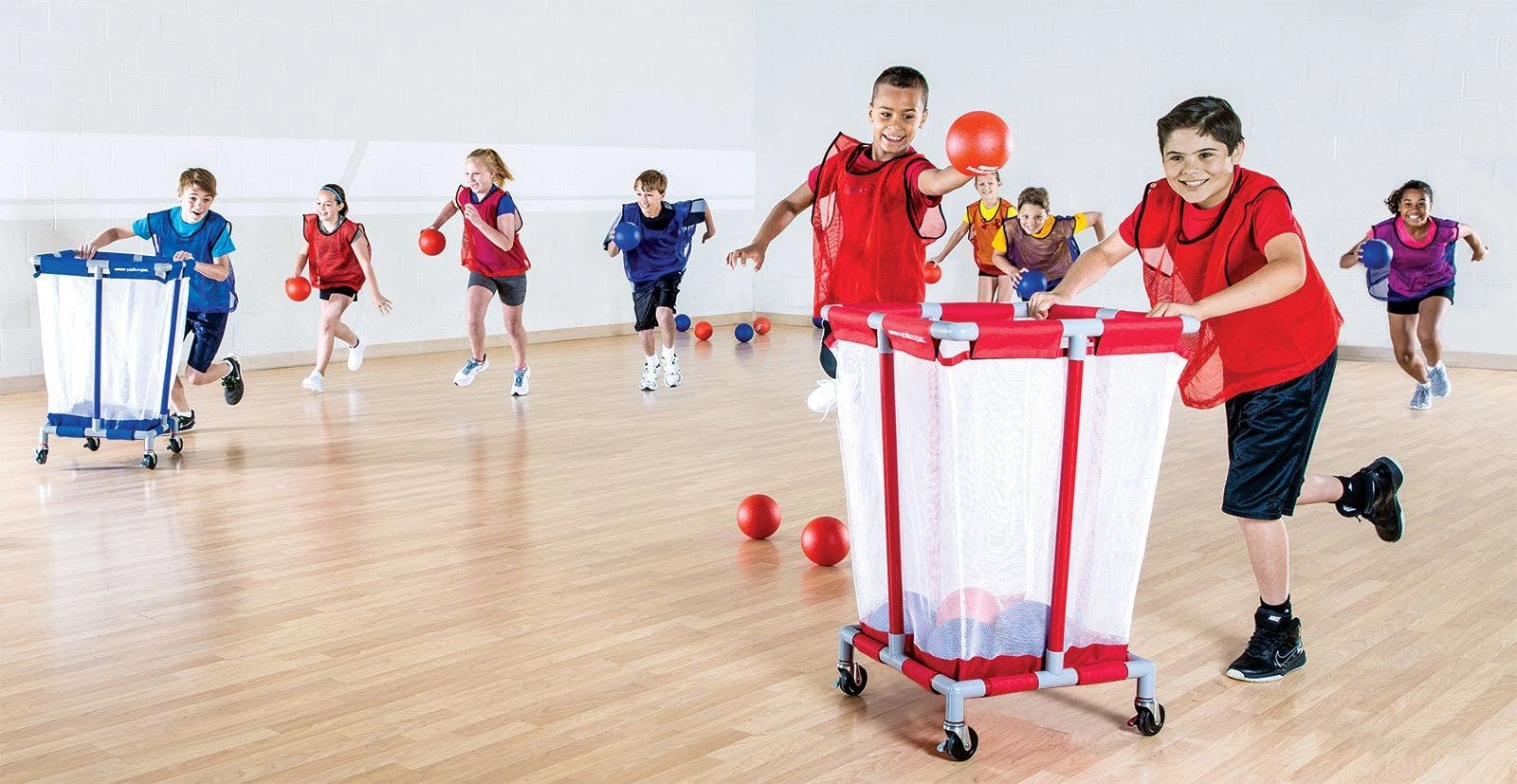 This is our only game that includes a goal on wheels, so the target is constantly moving, making it both more challenging and more fun! The balls are safe for all ages and strong enough to hold up to institutional use.