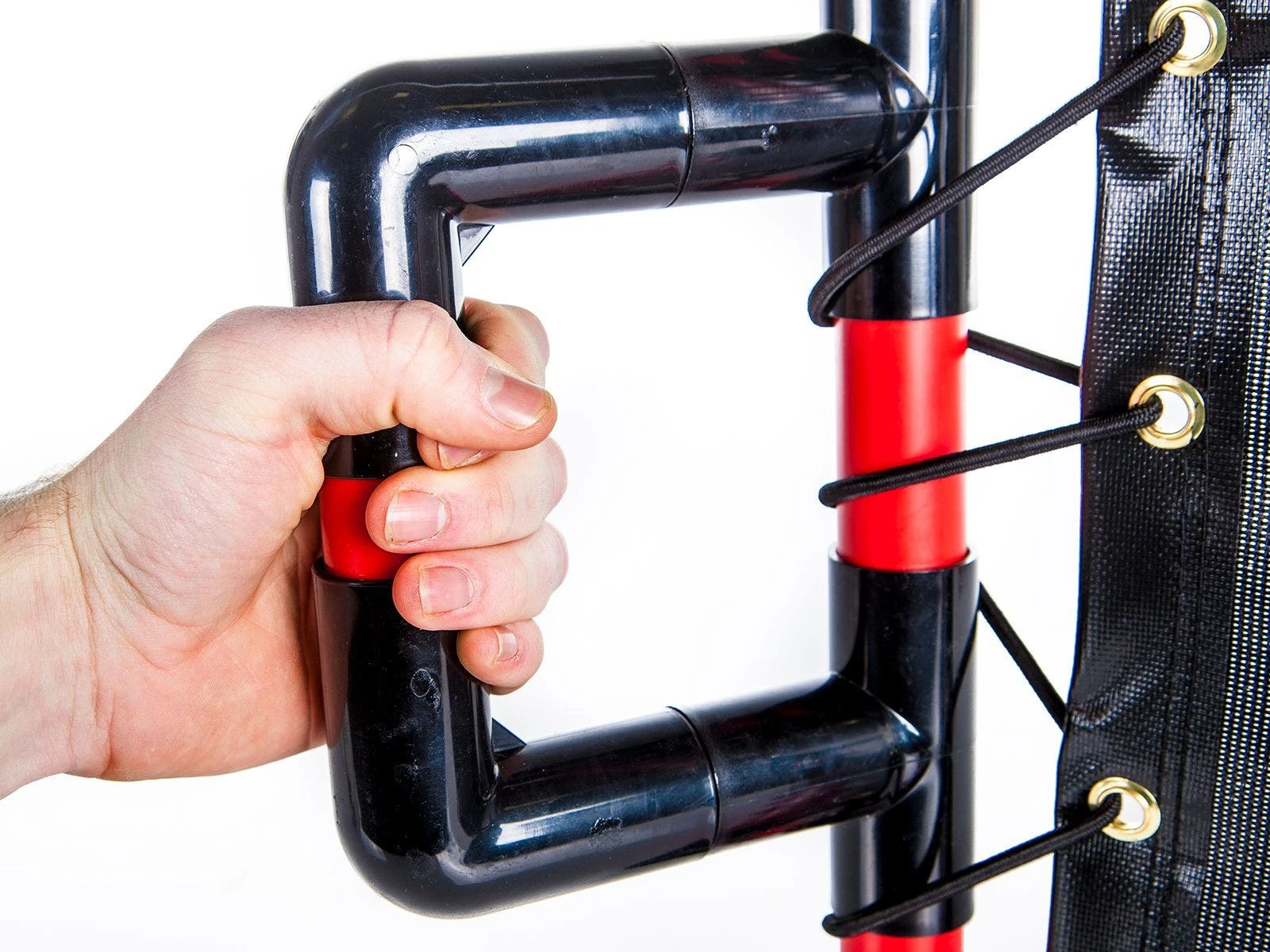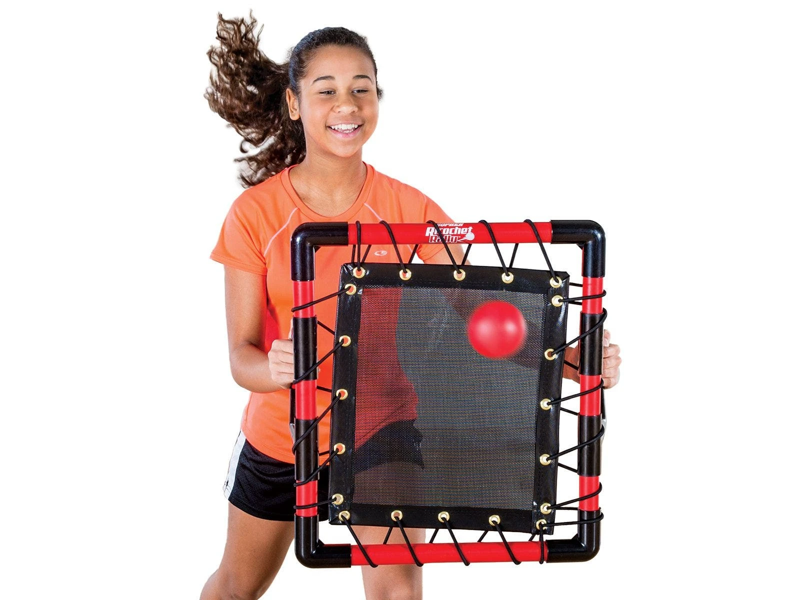 The custom ABS shield is lightweight and easy for all ages to hold. Two handles provide a secure grip and can be adjusted for the right angle. The taut nylon center rebounds balls with ease and is very durable.