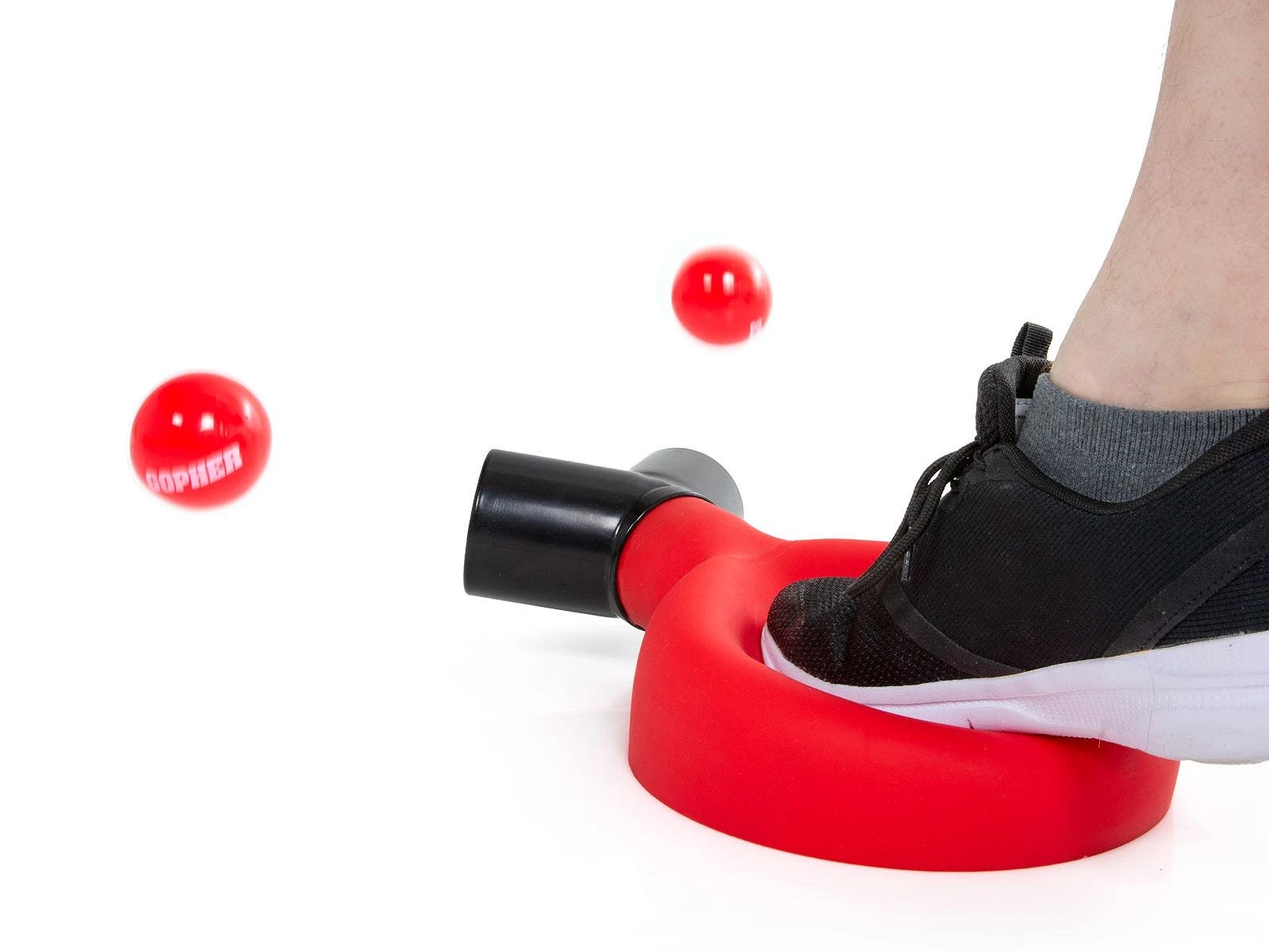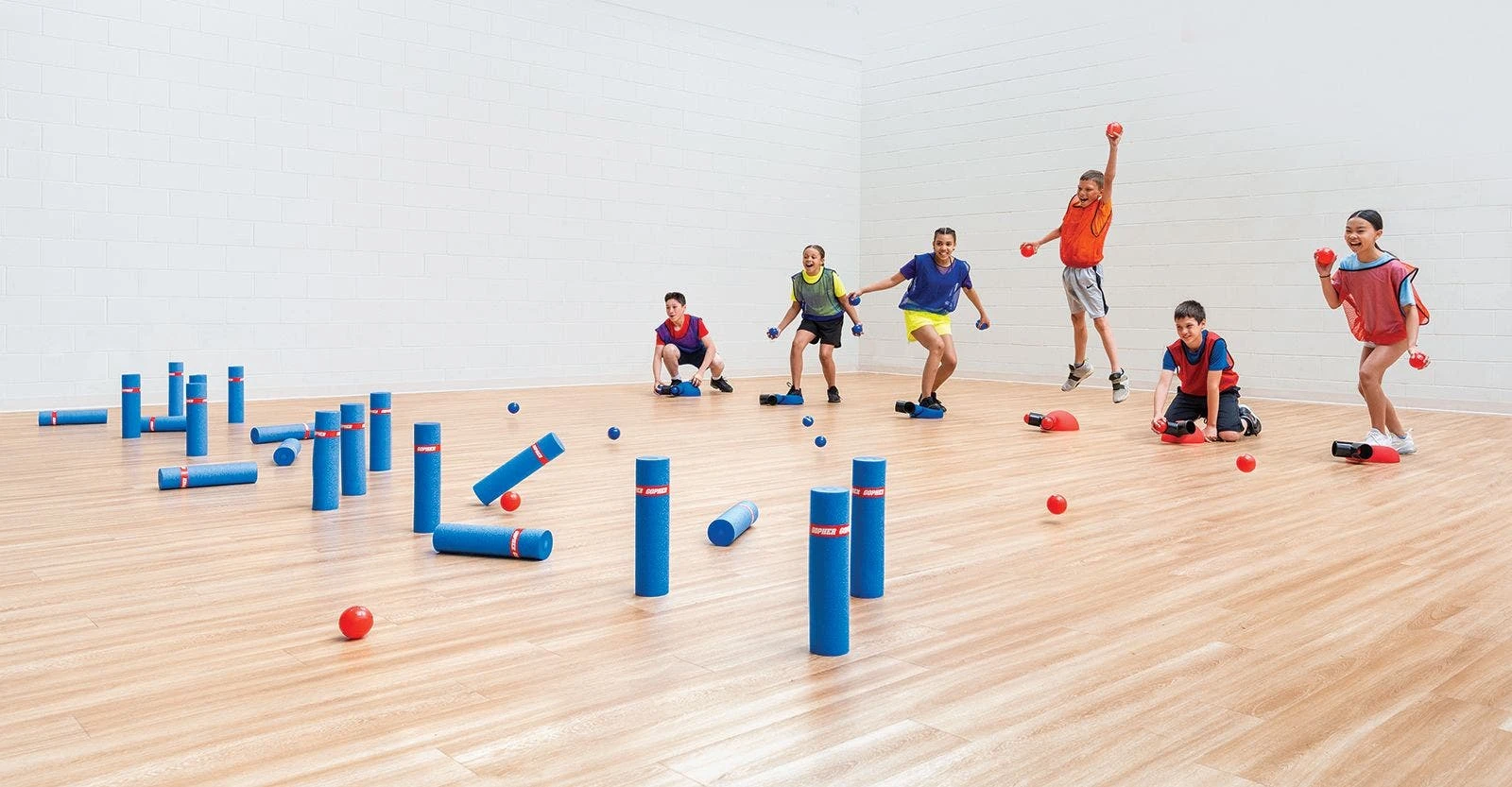 Begin by placing 3 ball launchers along the back line of each team’s designated play area. Players determine the best locations to scatter their 10 targets to give their team an advantage when launching balls. They load two balls into each launcher and stomp on the bulb to shoot the balls toward their targets. Players race to collect toppled targets and strategically reposition those still standing to get a better shot. The first team to knock over all its targets, or the team that knocks over the most targets in three rounds, wins! Change up the target game and have players attempt to knock over their opponents’ targets instead.