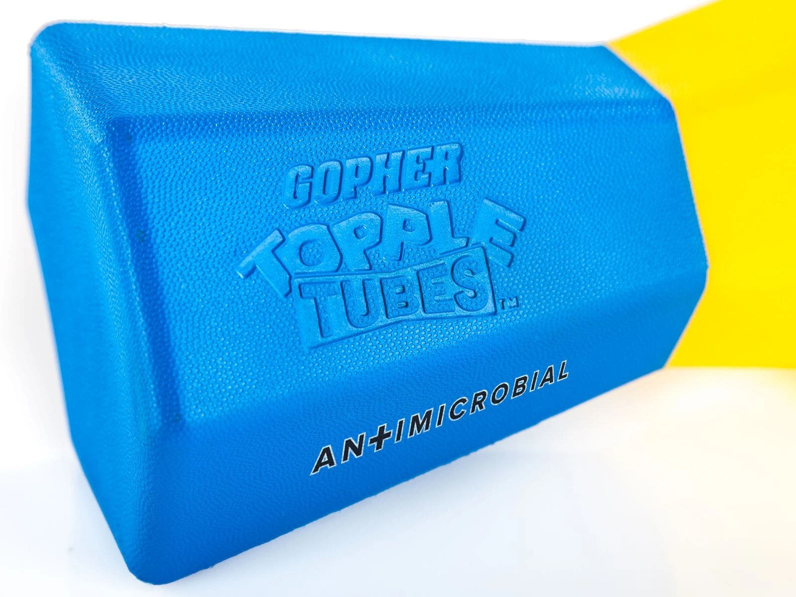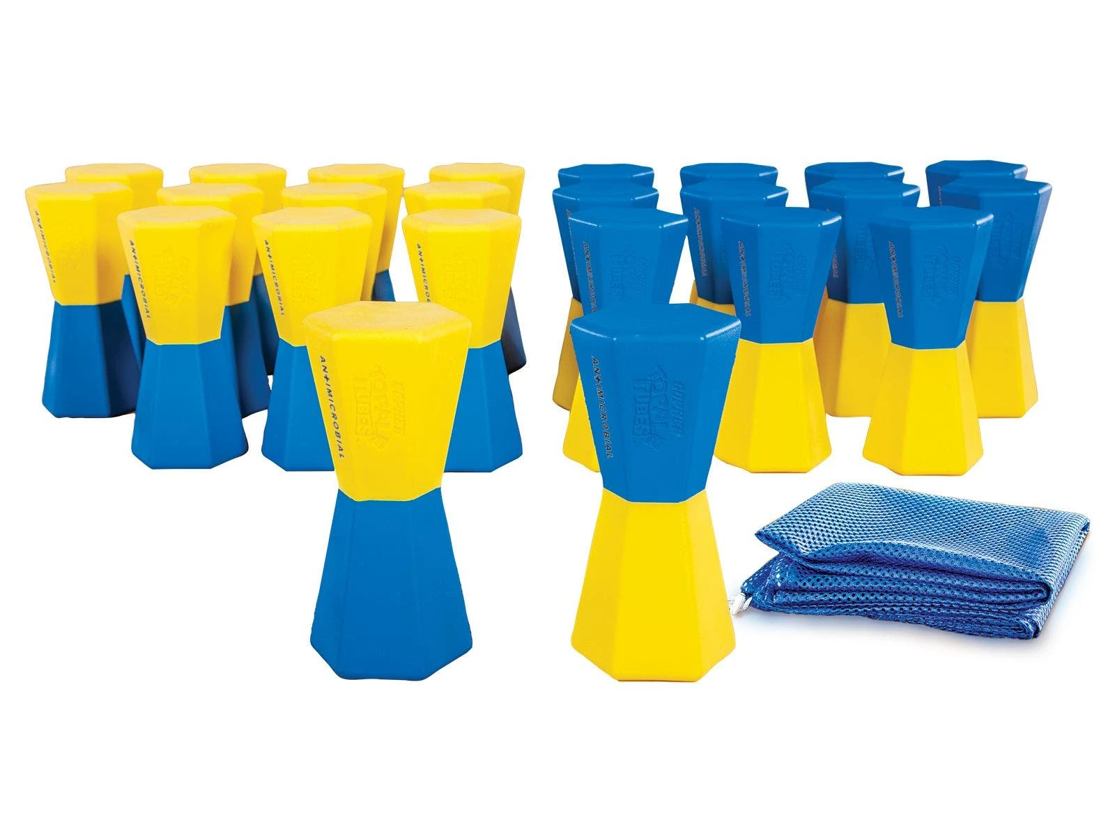 Made of tough vinyl, the tubes are sturdy, soft, and lightweight. This construction makes them appropriate for all ages. They have hexagon-shaped ends that narrow in the center, which helps aid grip and comfort. The tops are flat and even so they can be set up without tipping.