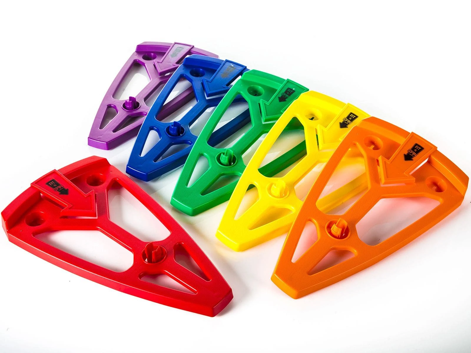 Durable plastic spinners withstand consistent daily use. Snap an activity template (sold separately) onto a spinner via a mushroom plug. This design also makes it easy to remove the templates quickly. Activity templates sold separately.