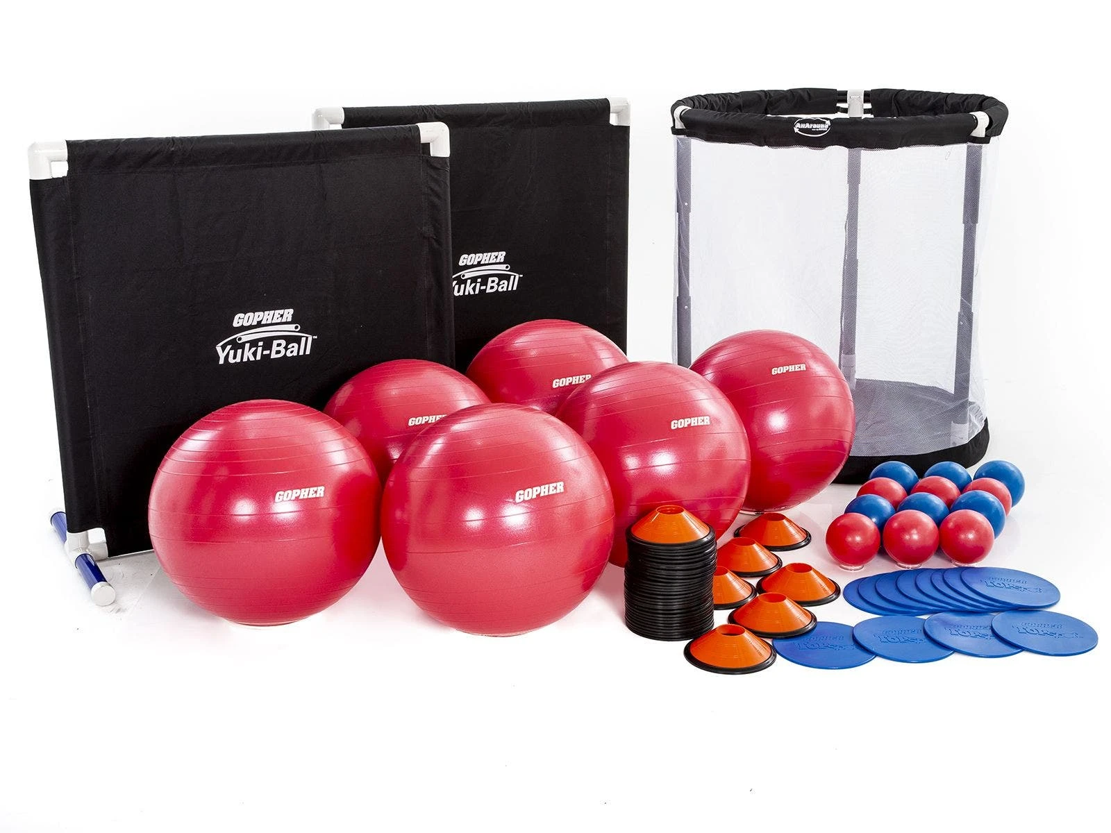 The set includes activity instructions with 3 games plus variations for team-focused and individual play. Versatile equipment allows for indoor play on a basketball court and outdoor play in a grassy field! The Complete Set accommodates up to 12 players, while an Add-On Set (sold separately) accommodates another 12 players. Pair them together for a class of 24!