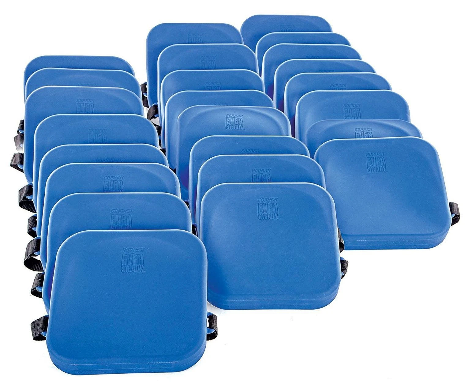 Set of 24 cushions makes it easy to outfit an entire class. Use the included bag to store cushions and keep them organized when not in use. The bag is ventilated so your cushions stay odor free. Each cushion supports up to 1,100 lb. Accommodates chairs up to 19”W. Cushions are 14”L x 14”W x 3”H; 3 lb.