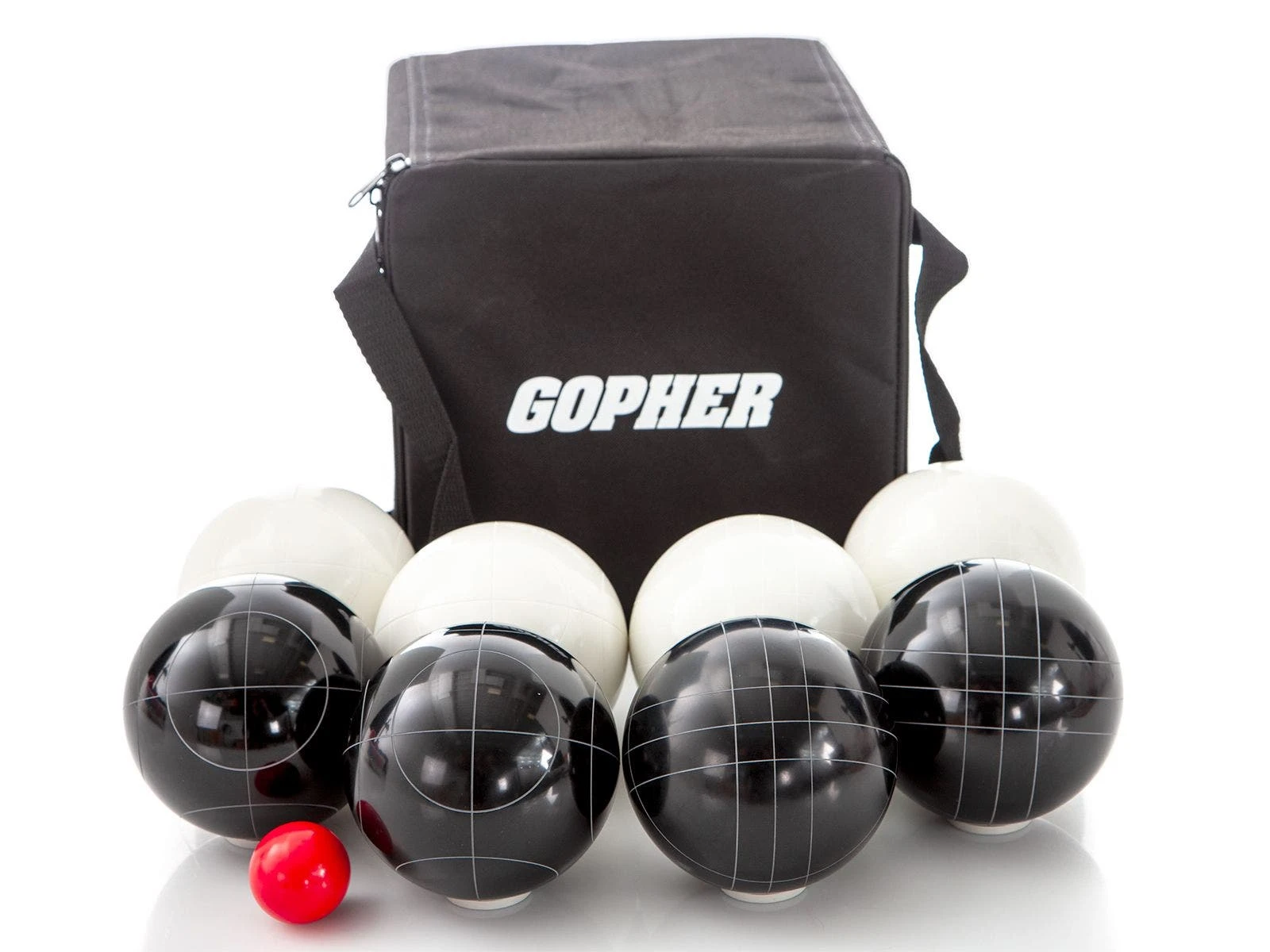 - Professionale Set. Includes 8 standard-size striped urethane balls, 1 pallino, and 1 storage bag. Balls are 107 mm; 1,200 g (2 lb 11 oz). Ages 12 to adult.