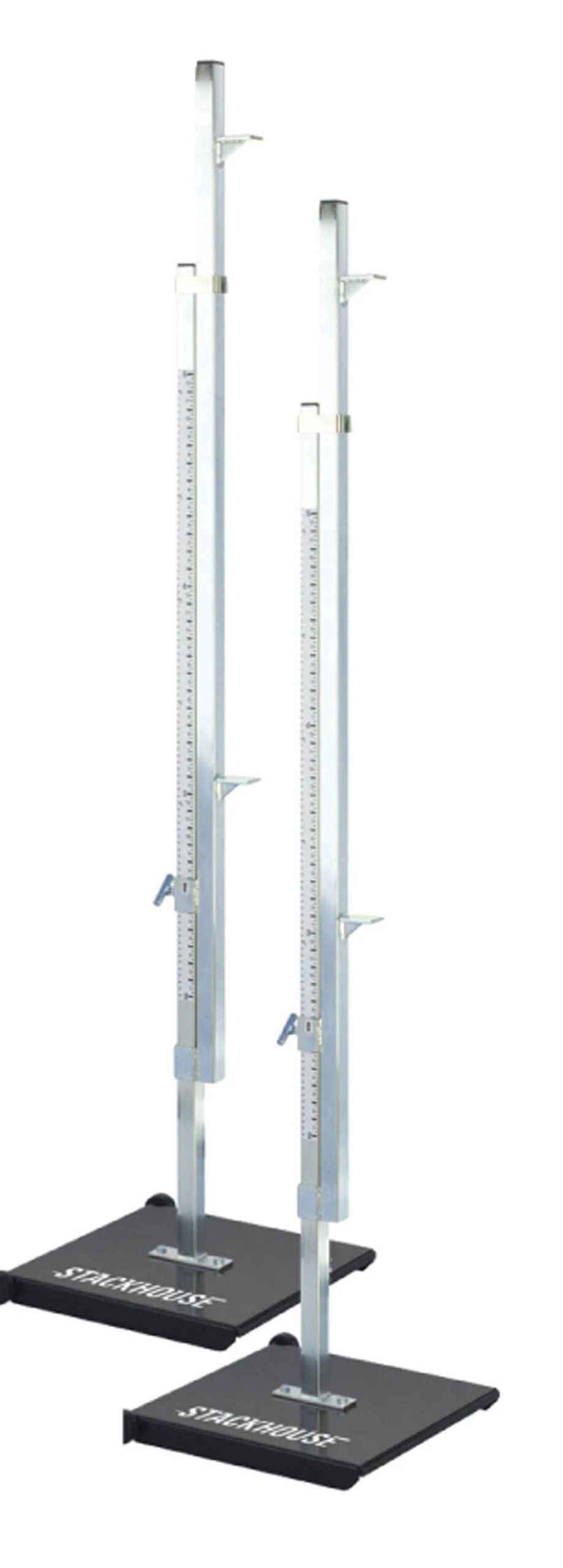Crossbar height adjusts from 24″H to 96″H in quarter-inch intervals, fitting the needs of older and younger students alike. Includes metric intervals as well (2 cm to 144 cm). Zinc-plated steel uprights are water-resistant and will last through long periods of outdoor use. Each standard is mounted on a 16″ base with wheels, allowing you to move them indoors or out with ease.