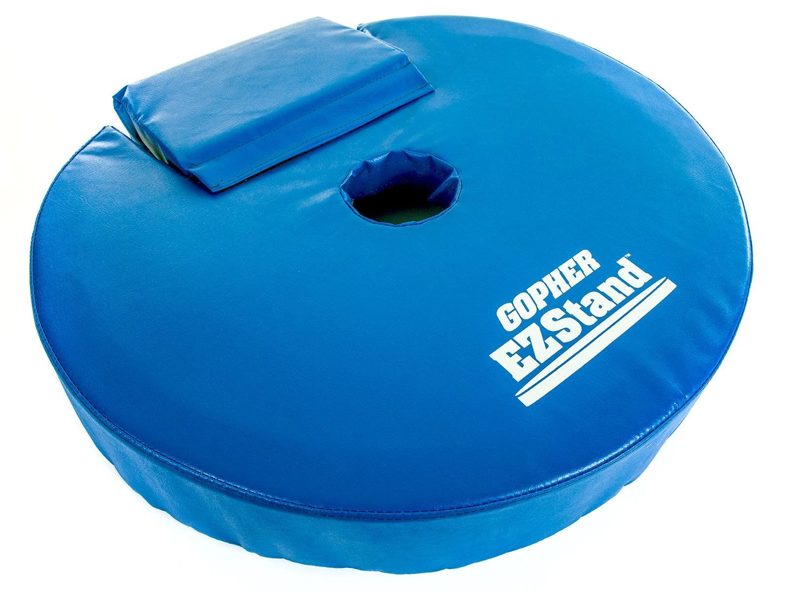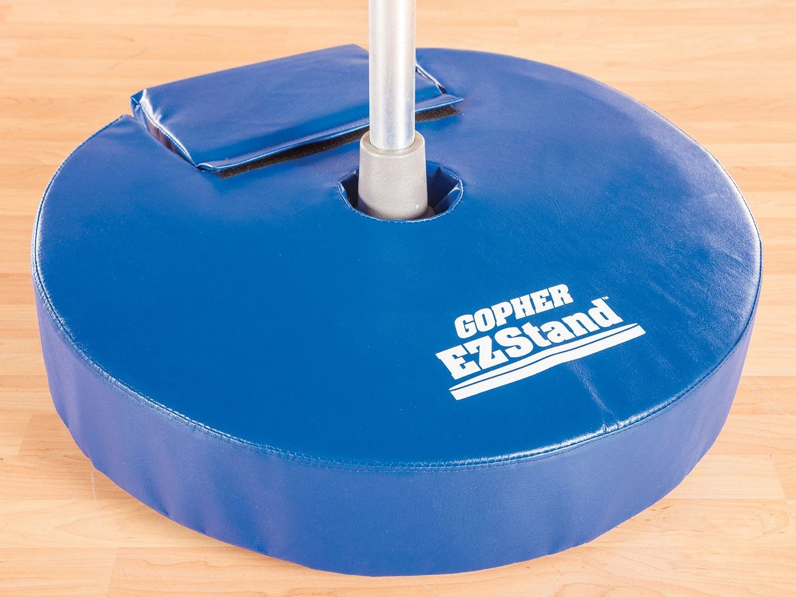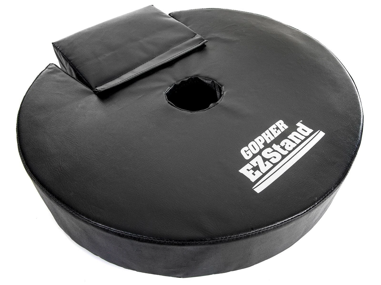 Each custom-designed pad fits Gopher’s EZStand Bases, making sure all parts of the base are covered. To set it up, simply insert the post into the pad’s center hole and slide the pad down the standard. A wheel cover secures with hook-and-loop fasteners for easy removal. Follow the care and cleaning instructions to increase the lifespan and performance of the pad.