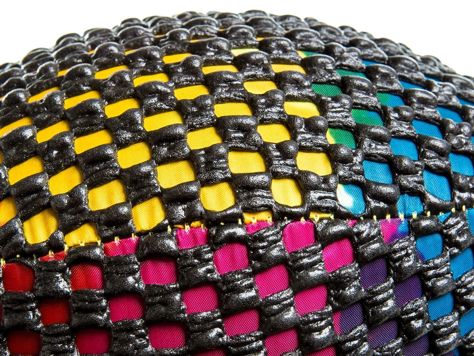 Thick, soft nylon fabric covers stand up to routine use, indoors or out! A butyl-rubber bladder provides excellent air retention, so there’s little to no time spent on reinflating, even after long periods of use. Rainbow colors add a splash of fun for younger students while aiding in ball tracking.