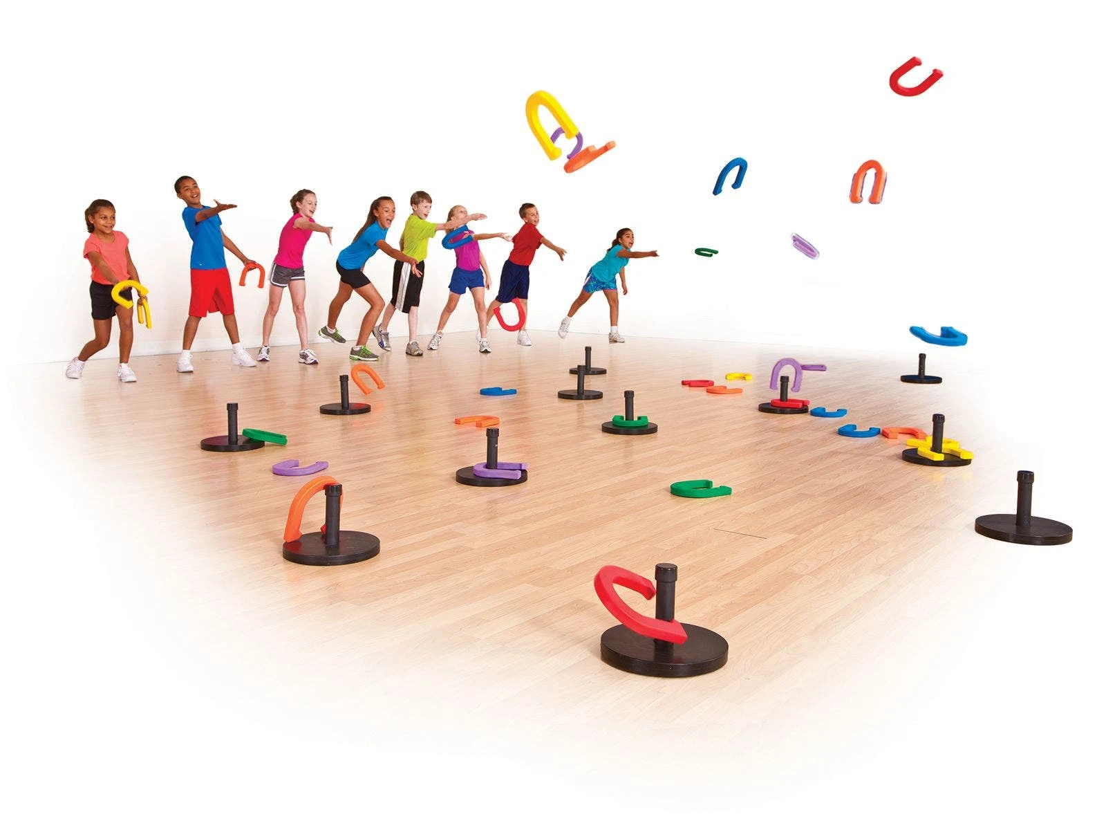 With so many horseshoes available, teachers can set up a wide variety of activities during PE classes and after-school programs. This set includes activity instructions for action-packed team relays and game alternatives.