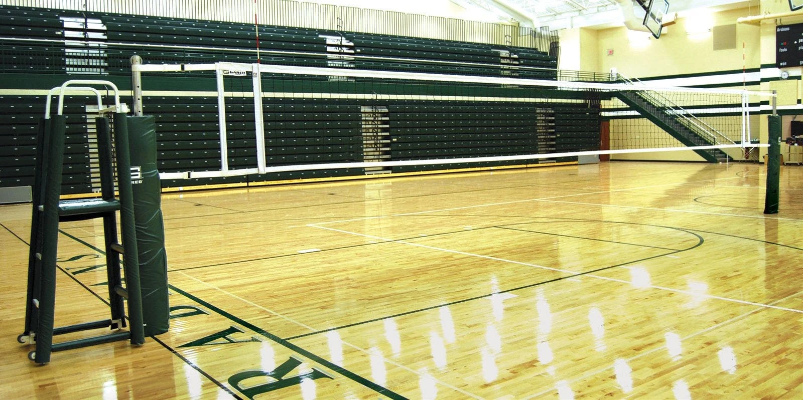 - One-Court System. Includes 2 standards (1 w/ winch), 2 post pads, 2 sideline markers, 1 competition net, and 1 pr antennas. 36’L end to end; 176 lb.