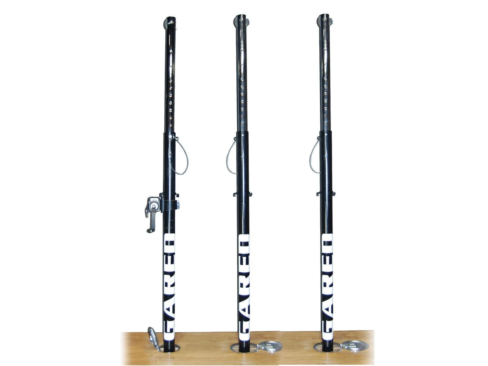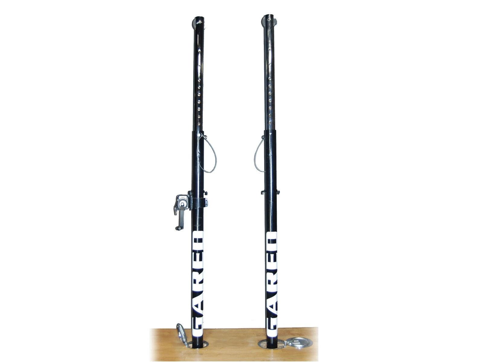 Enjoy hassle-free net height adjustment using the telescopic 3” dia uprights with this system. Easily raise or lower to your liking, then place the stop pin in any of the laser-engraved height settings on each post. Adjusting tension is a breeze as well, thanks to a heavy-duty ratchet winch on one post. Easily set the competition net, sideline markers, and antennas via the sliding collar and pin-lock mechanism integrated into the upright.