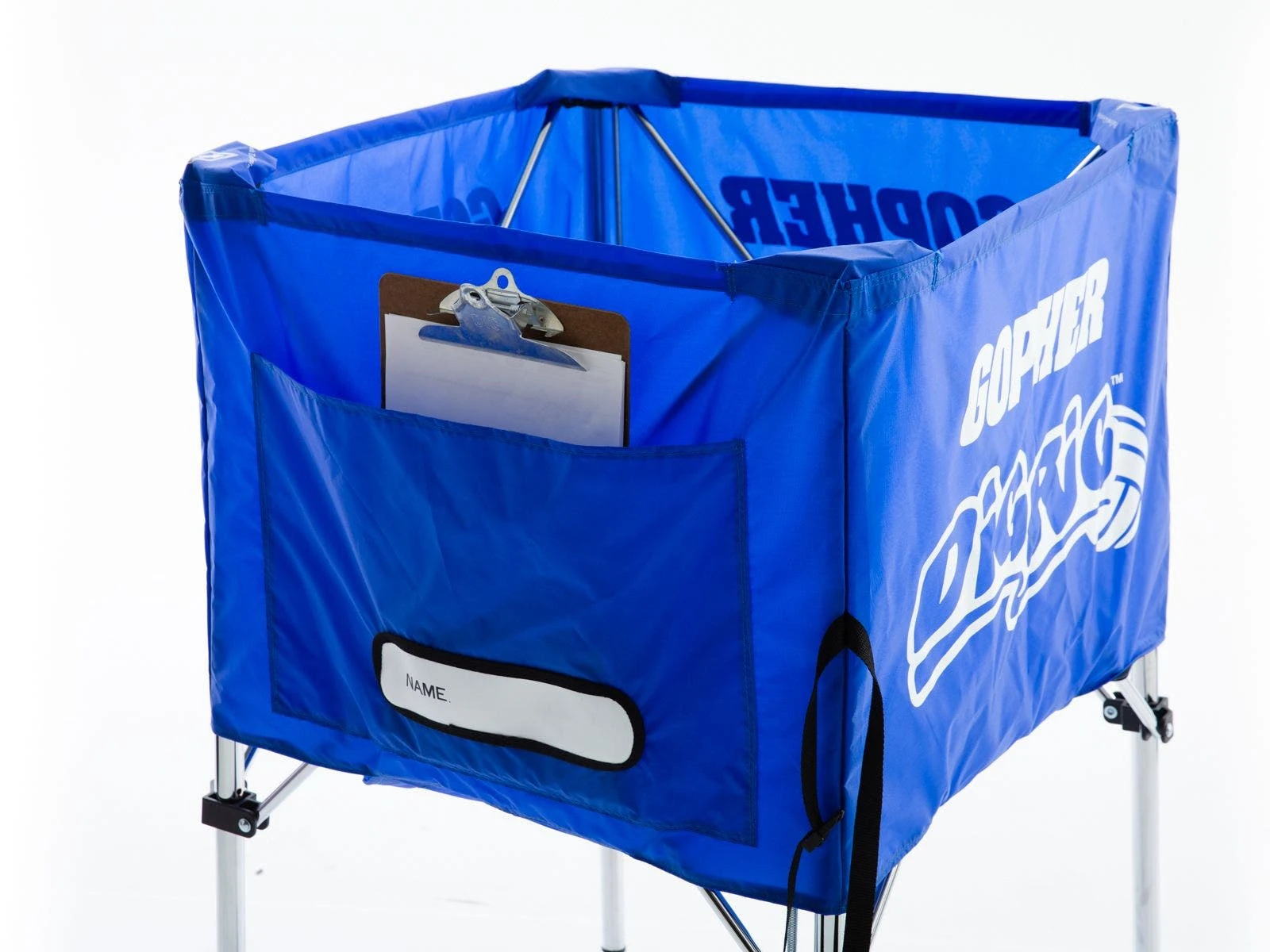 Galvanized 1″ dia steel tubing frame is extremely durable. It will stand up to years of use in a school setting. Metal casters will not crack as they roll smoothly over rough or uneven surfaces. Durable nylon basket resists tearing, fraying, or splitting at the seams. When the cart is no longer in use, simply collapse the frame, fold it, and place it in the included storage bag. Durable strap allows a teacher or coach to throw it over his/her shoulder for hands-free transportation.