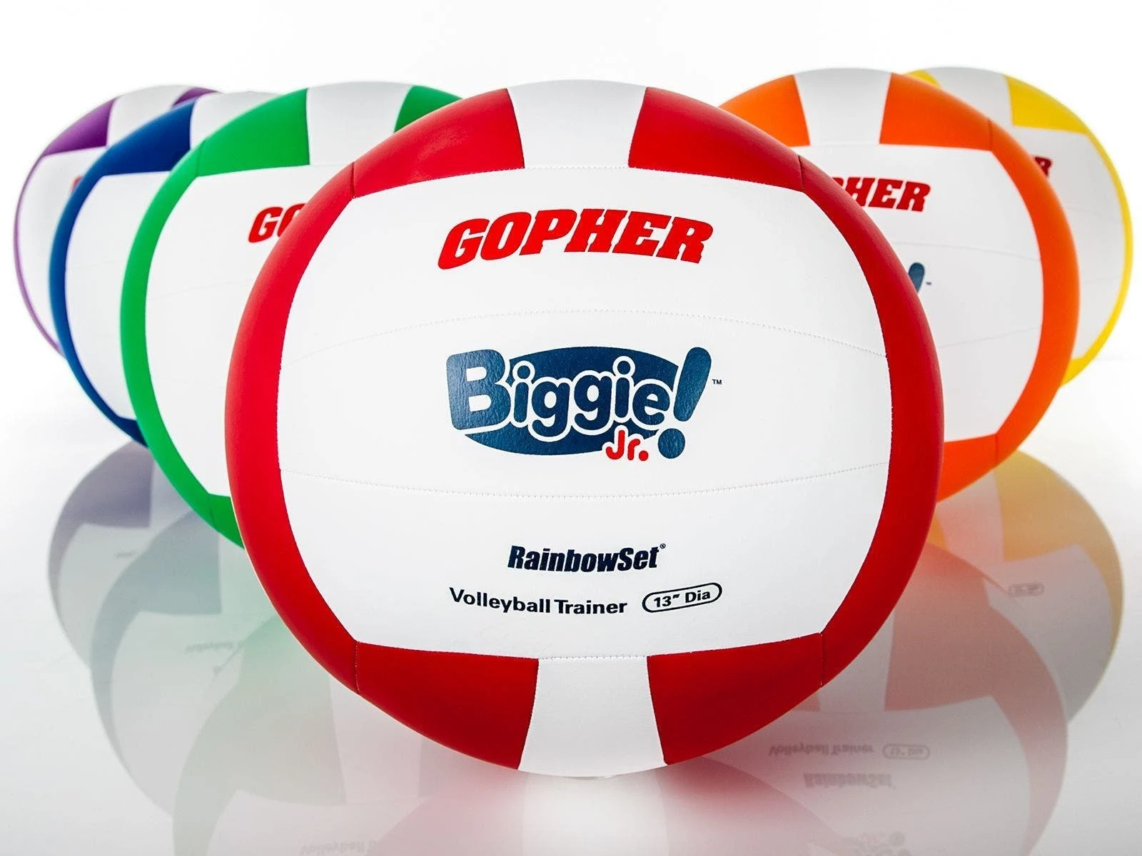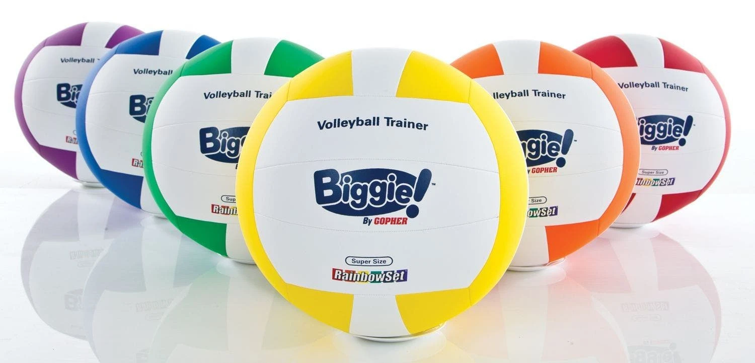 Larger, 16″ dia Biggie! volleyball is twice the size of an official volleyball, but it’s 20% lighter. Along with the 13″ dia Biggie!, these oversized volleyballs encourage young players to participate while avoiding the stinging sensation associated with traditional volleyballs. This helps students become more comfortable with the ball before moving on to regular volleyballs to increase difficulty.