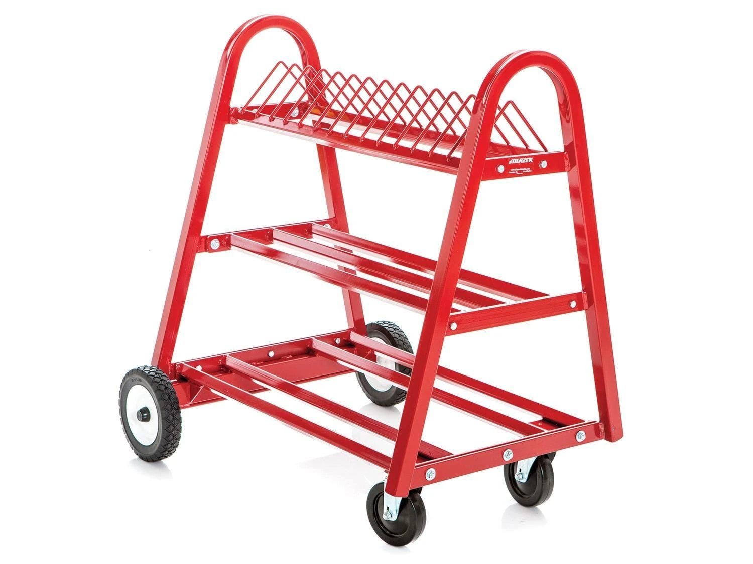 Keep valuable track equipment organized with Blazer’s extremely useful implement rack. This masterfully crafted rack is designed to store and transport a variety of team supplies. The top rack holds up to 14 assorted discuses. The middle rack is a two-way rail system that holds up to 14 shots. The lower rack holds up to 14 hammers.