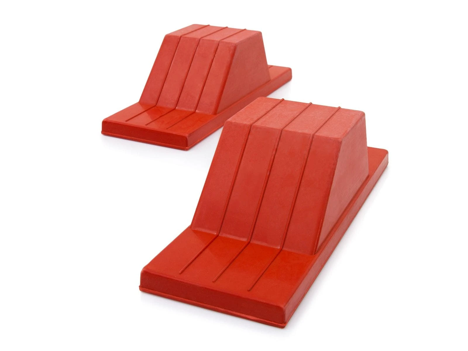 These reliable plastic starting blocks stay put on any clean floor without help from glue or pins. The 3¼”W pedals are lightweight easy to move after use, making setup and breakdown as easy as a warmup lap. This block is best suited for indoor use and will not damage the facility’s surface. It is recommended that a second person supports the units with their feet from behind.