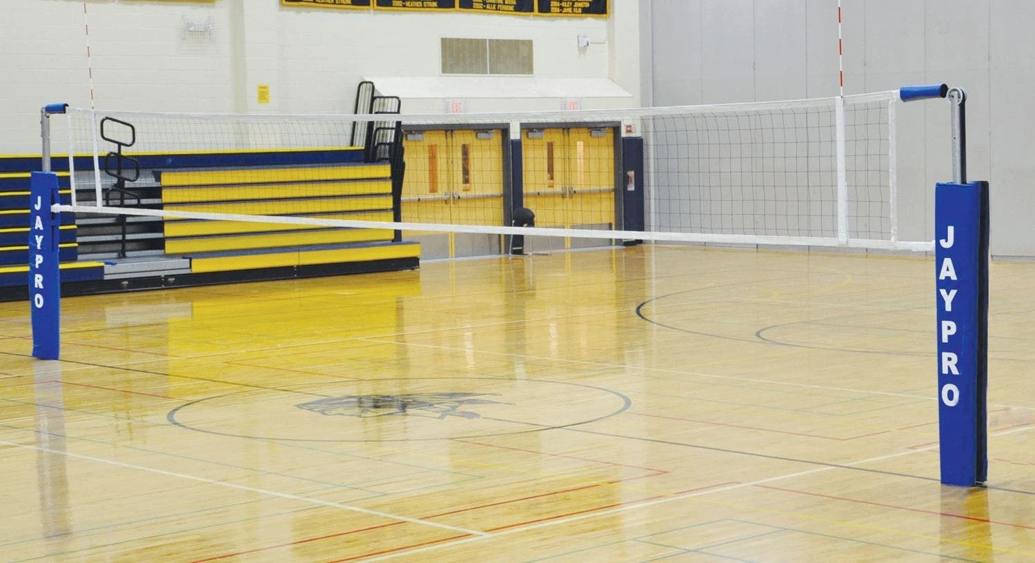 - One-Court System. Includes 2 standards (1 with winch), post pads, competition net, and antennas. Floor sleeves sold separately.