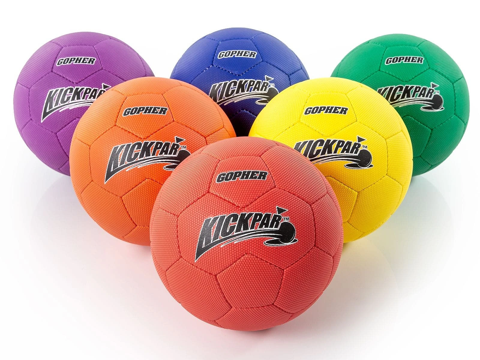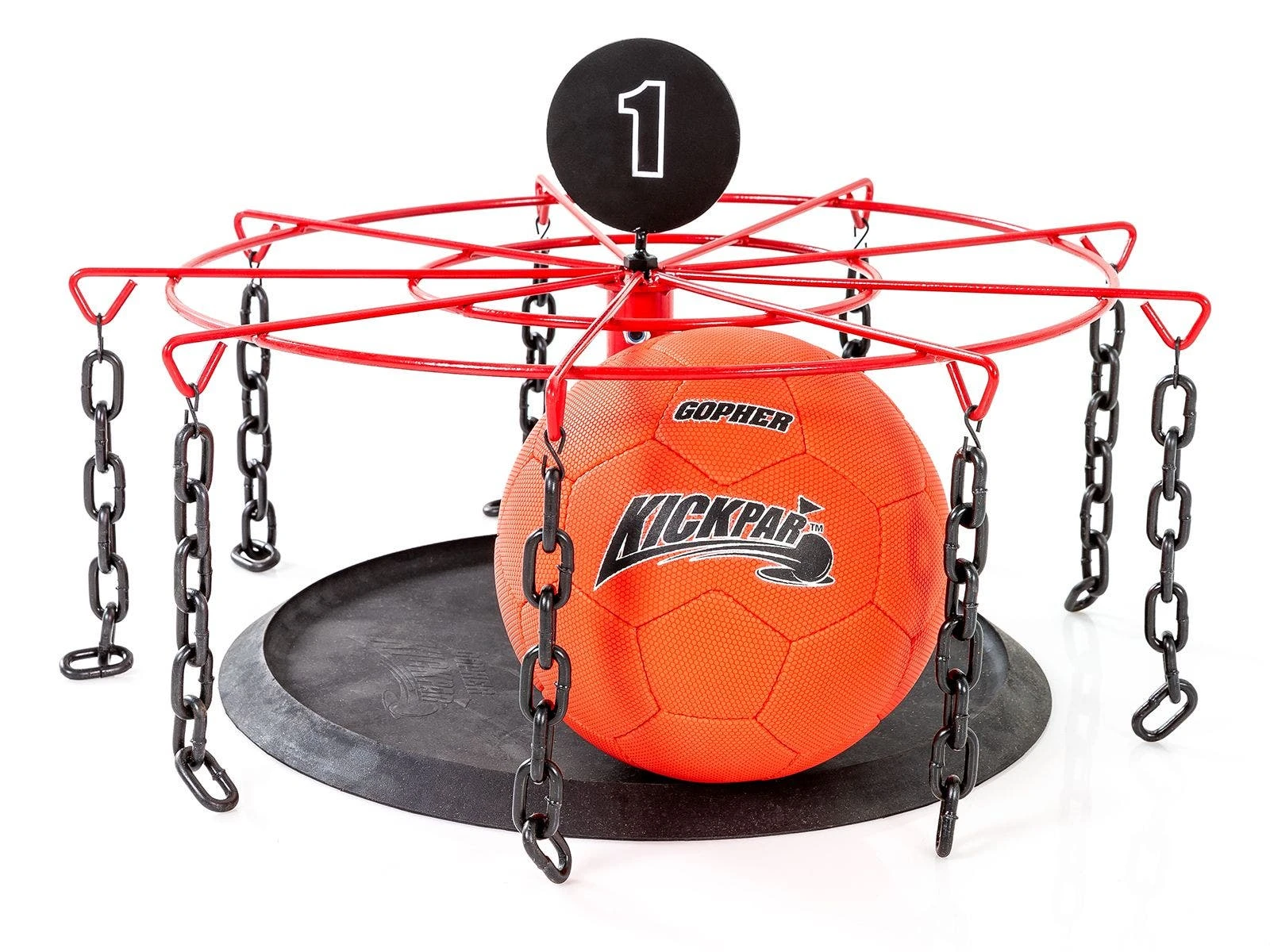 Goals include a circular metal top with nine 8”L plastic chains similar to a disc golf target to slow down the ball. Quickly adjust the goal height from 8-1/2” to 11-1/2”H to accommodate activity balls of various sizes. Each goal has a rubber base to keep it in place during use. The base also has a lip on it to aid in catching the ball. Keep track of the hole order using the numbered metal goal flags. The included soccer balls feel like game balls, but their low-bounce technology and polyurethane cover make them much easier to control. Ideal for indoor use, the balls feature cushioned, foam-backed panels to soften impact when kicking them.