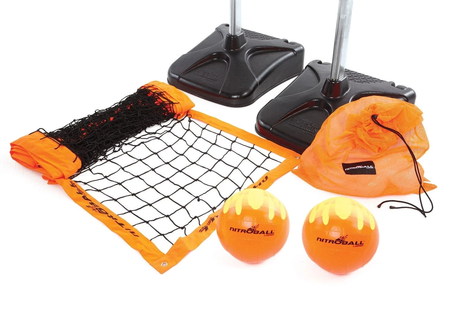 - Basic Pack. Includes 2 balls (9″ dia), 1 net (32’W x 36″H), a storage bag, and activity instructions.