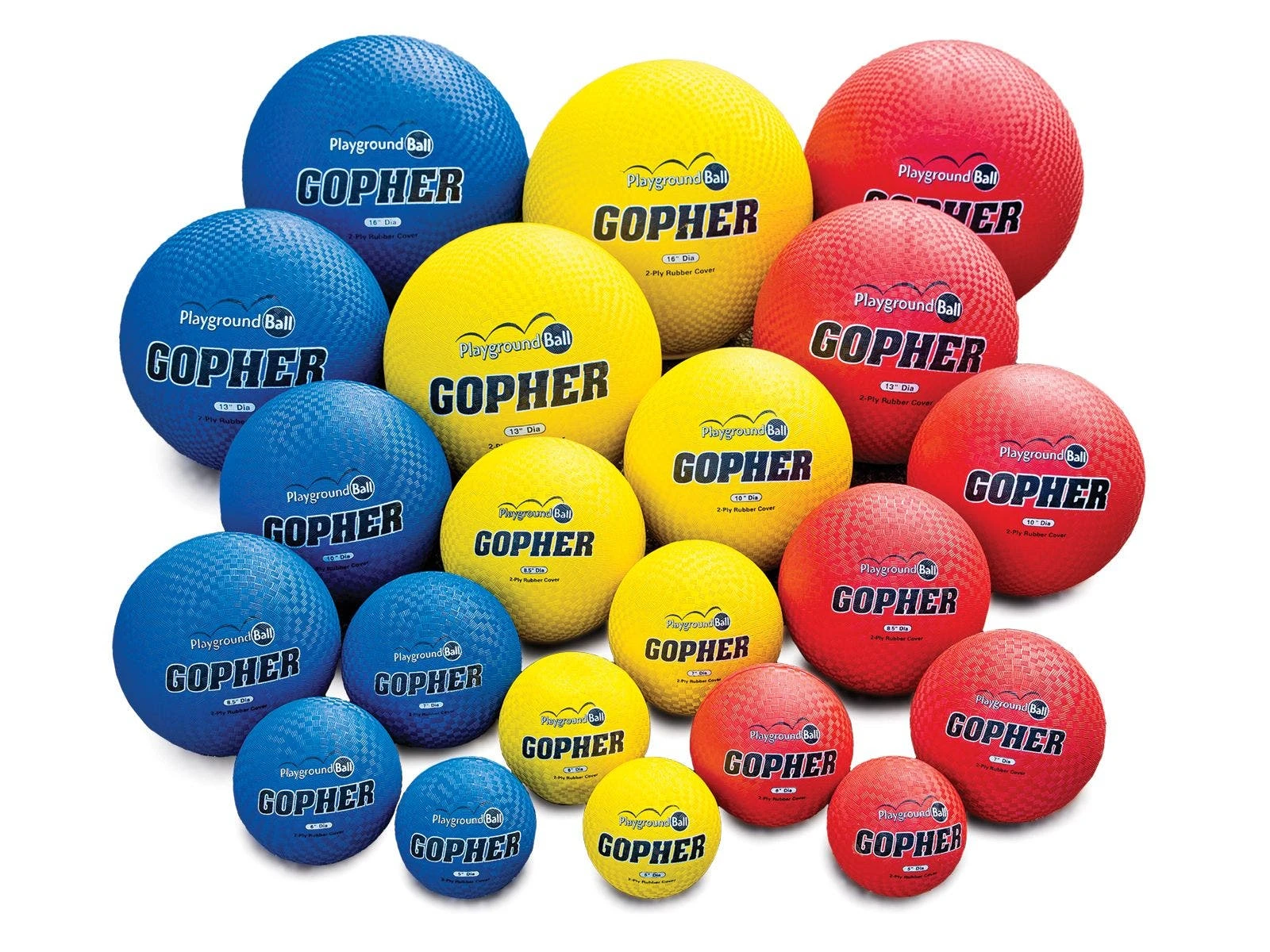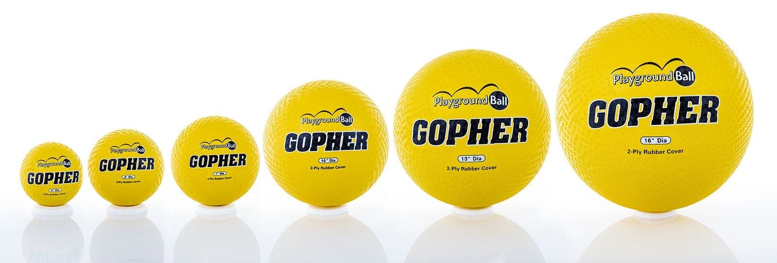 Gopher Playground Balls are available in Sets of 6, in all 4 sizes, and Individually in 8.5″ dia.