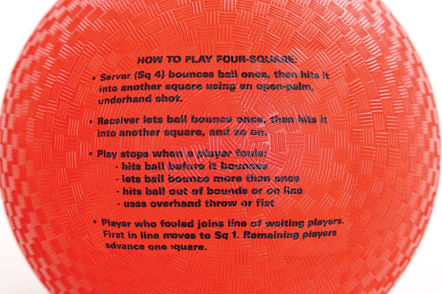 Students can be self-starters and self-moderators with these heavy-duty rubber balls. Four Square rules are printed right on the ball! Students can easily familiarize themselves with the game, and settle playground disputes quickly and definitively. These durable balls can also be used for other playground activities and skill practice such as partner toss and catch, bouncing, rolling, throwing at targets, dribbling, and much more!