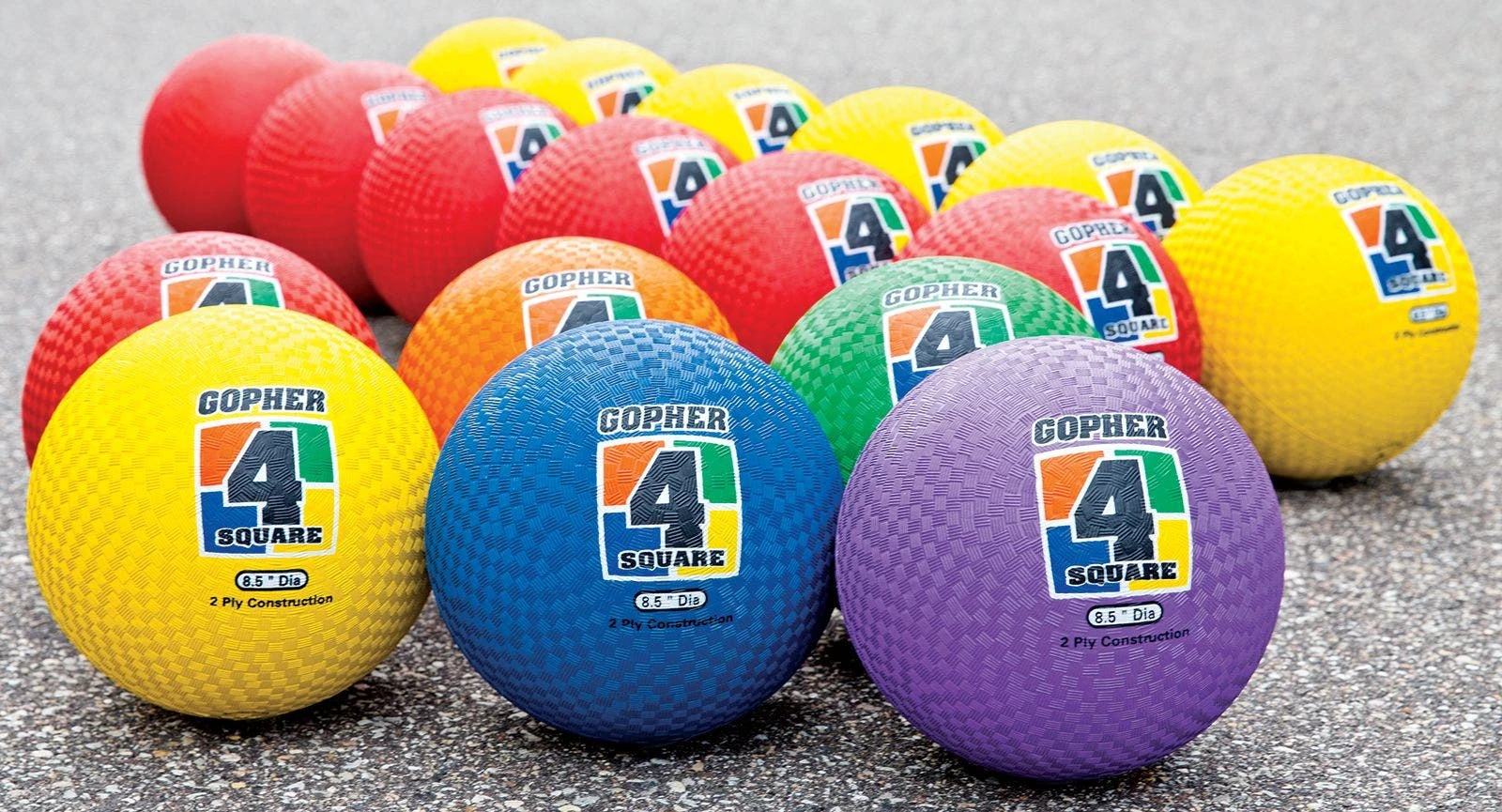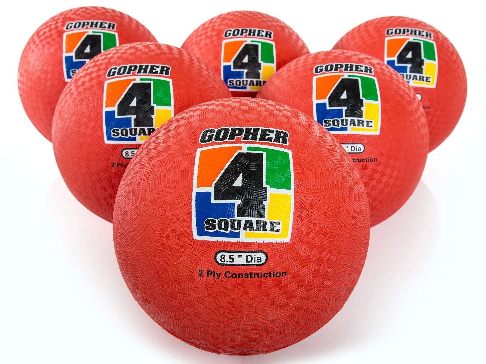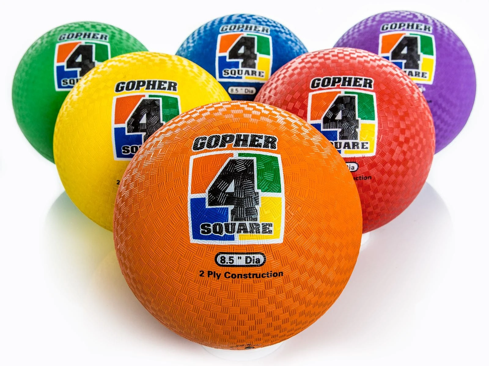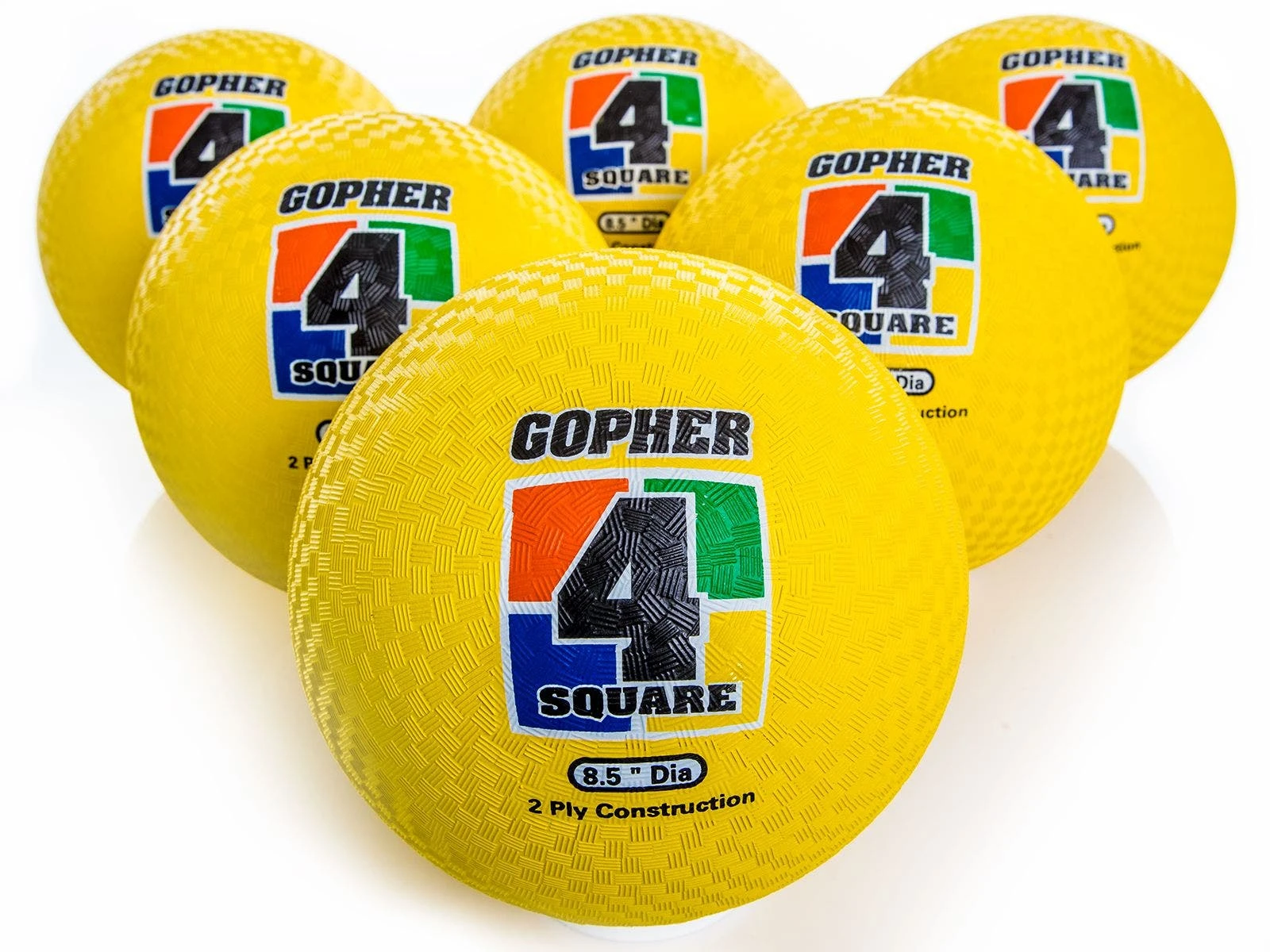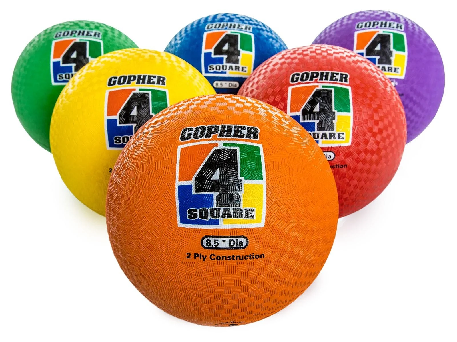 Gopher 4-Square Balls are available in sets of 6 in 3 color options.