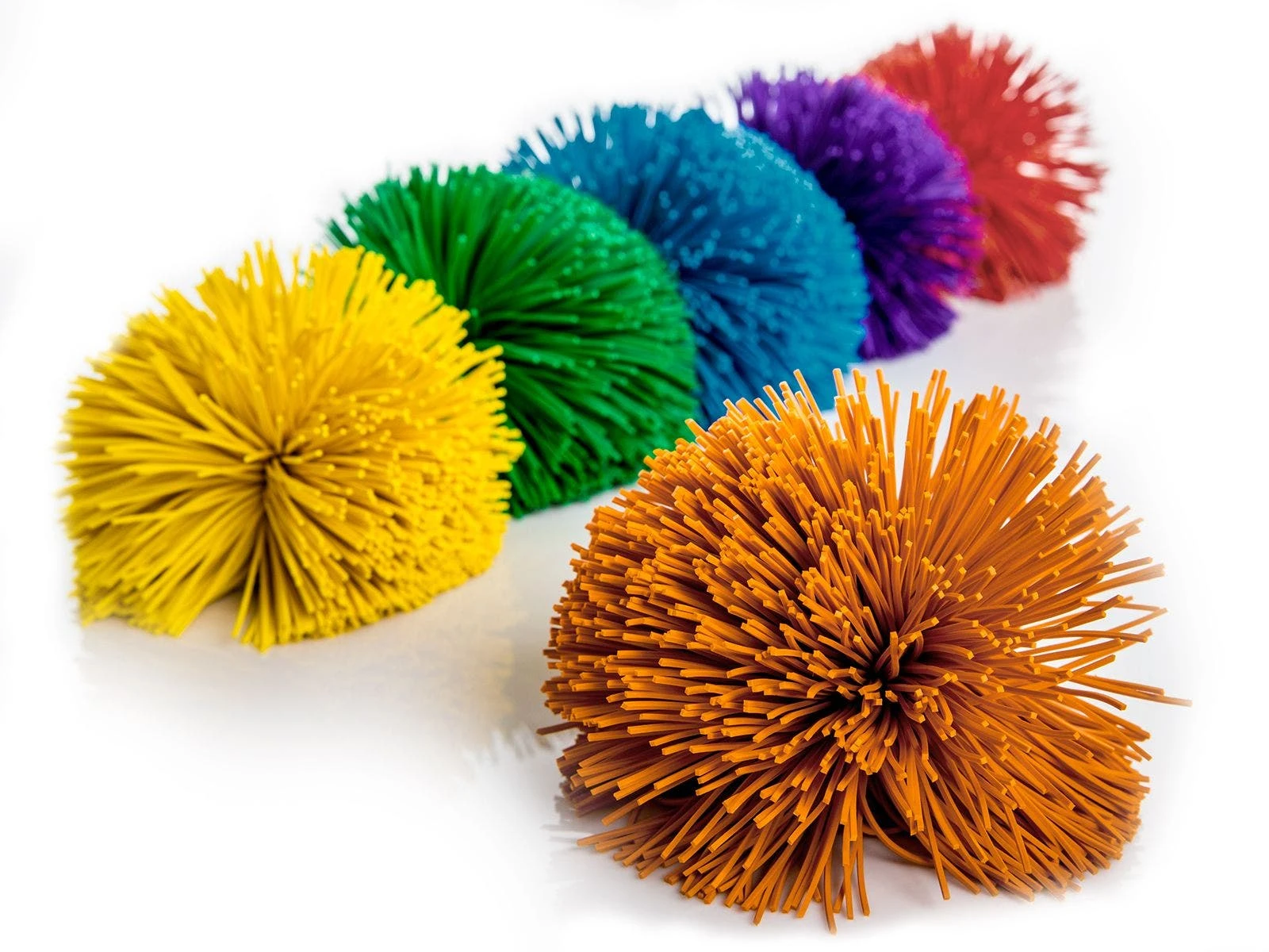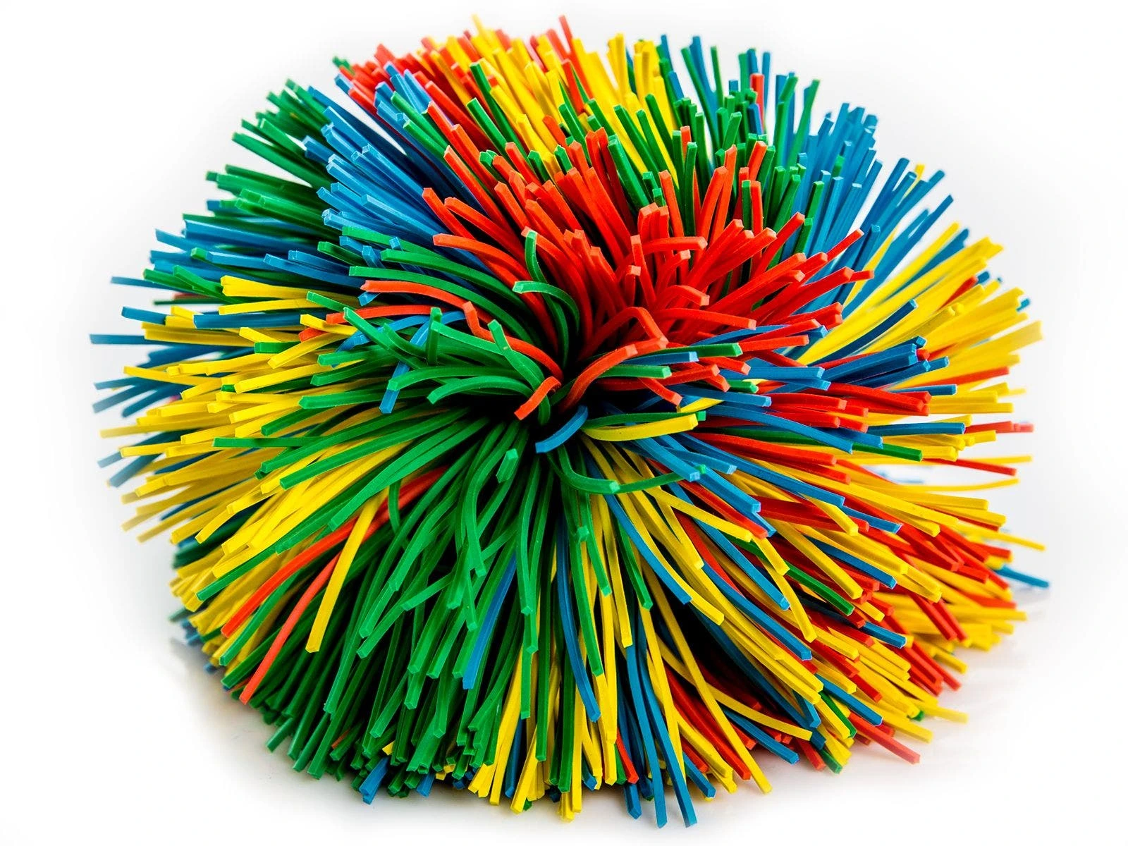 Rubber Band Balls are available in Rainbow sets of 6 or multicolored individual balls.