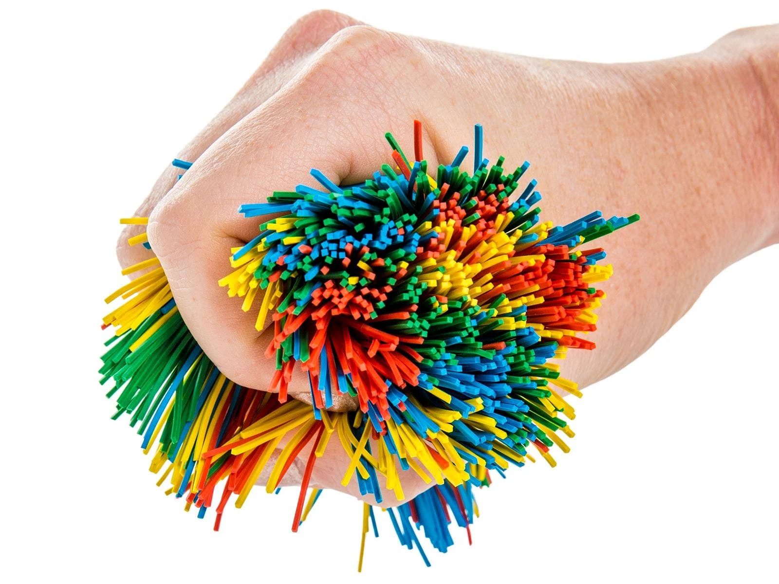 Practice throwing and catching skills without having to worry about chasing the ball all over the room if they drop it. Made of bright latex strands, they won’t roll when dropped. Plus, these washable balls are heavier and far more durable than fleece balls.