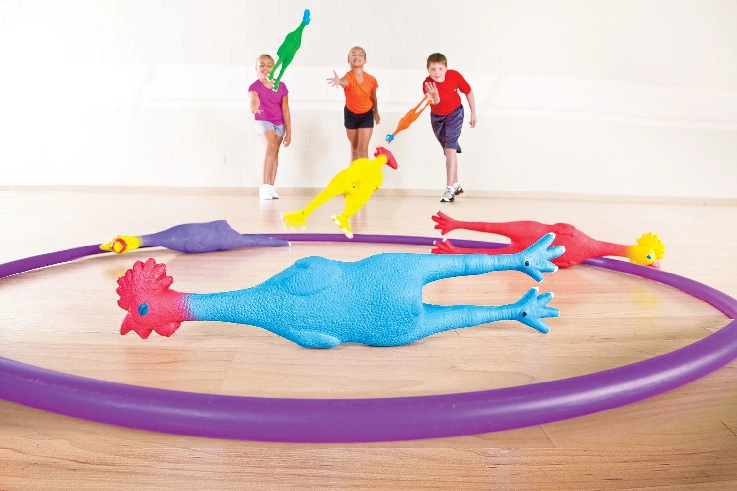 Each variety of rubber animal—chickens, pigs, fish, and frogs—comes in a Rainbow Set of 6. Students can pick the color they like for the day’s activities, or teachers can assign colors to particular teams and groups. Colors also make it easy to keep track of equipment and ensure everyone is returning theirs in good condition after the game is over.