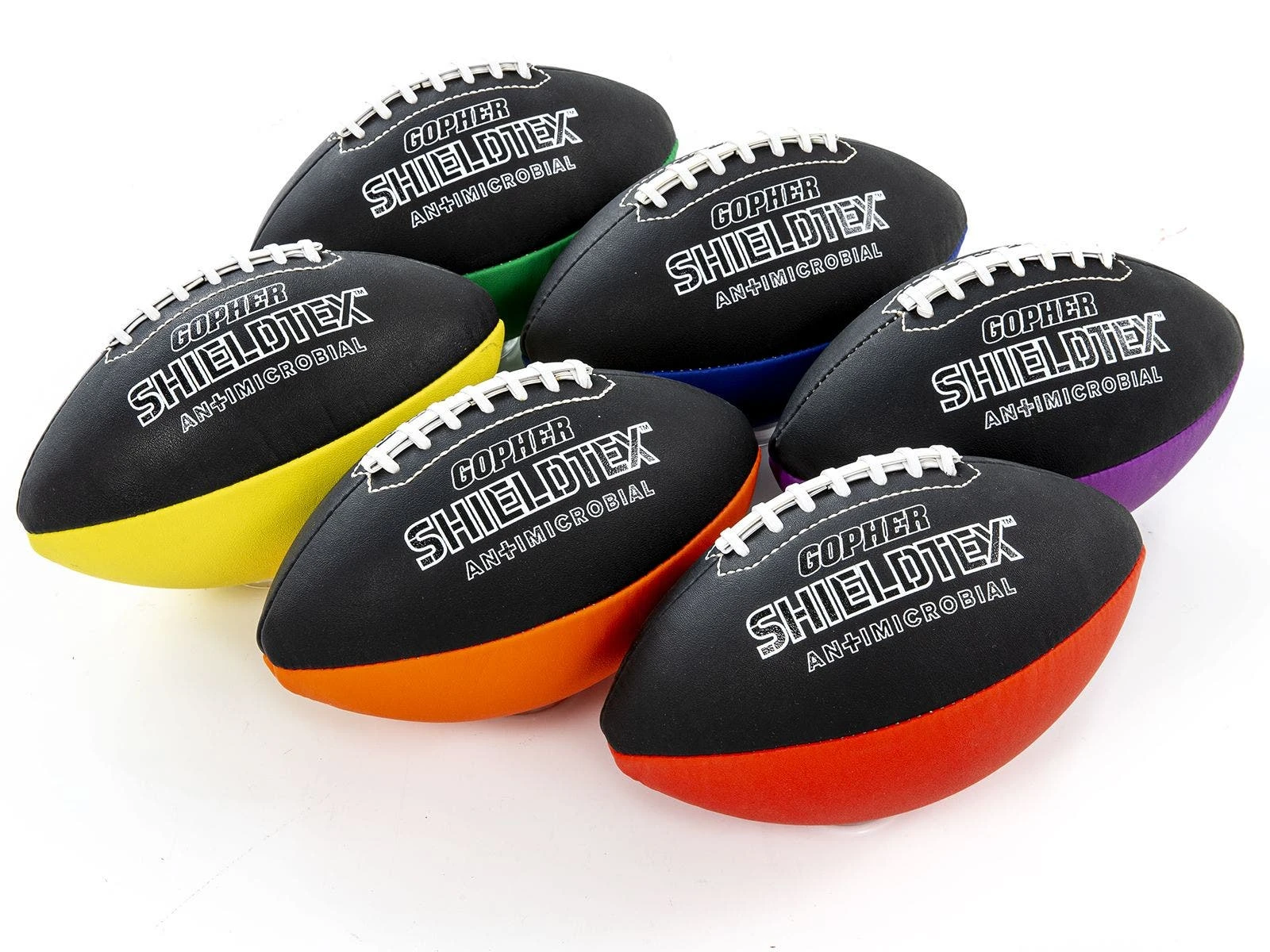Heavy-duty construction and an airlock bladder ensure the balls keep their shape class after class. Balls are available in Rainbow Sets of 6 with a pattern in black and vivid Rainbow colors. Choose from footballs (youth), volleyballs (official size), or soccer balls (size 5).