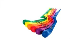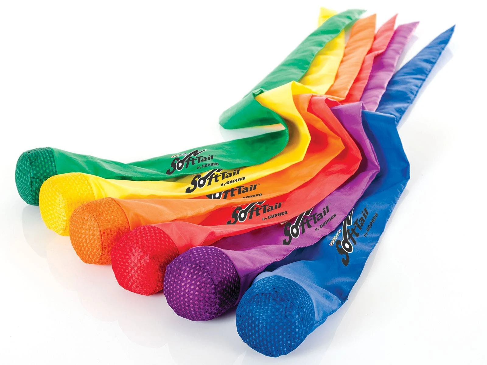 The design of SoftTails takes away the fear of tossing and catching. When using these balls, students do not have to be perfect when they throw or catch—they just have to be in the vicinity of balls to catch it by the tail. The combination of vivid Rainbow colors and a 36”L tail make it easy to spot balls in the air and track their flight path.
