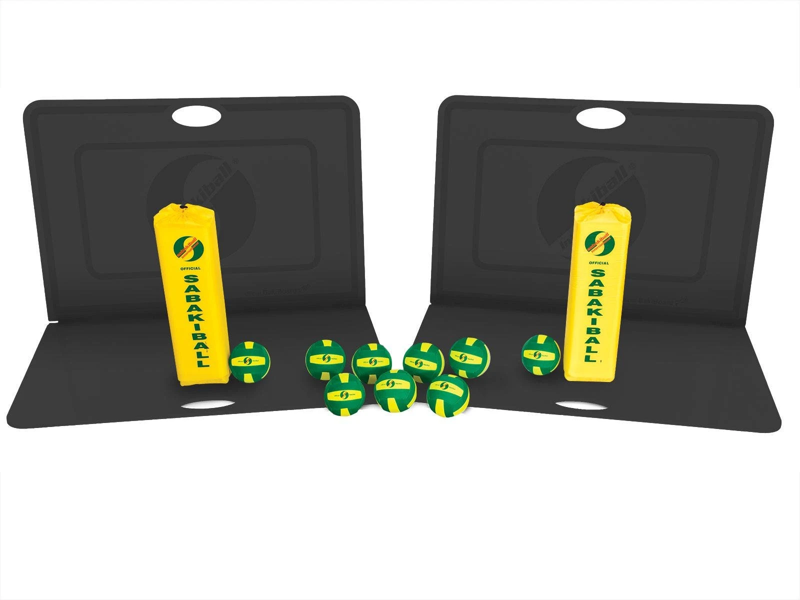 Lightweight 6″ dia ball has an inflatable rubber bladder and neoprene cover, keeping it soft and lightweight. The bright colors make it easy to spot the ball as it flies through the air. Foam BakiPins (22″H x 6″ sq) are covered in nylon and include a drawstring for easy carrying. They also feature a cloth sandbag bottom to keep the pins upright.