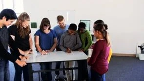 The dry erase top on our premium standing desks makes it easy to share notes, build upon ideas, and show work. The 46”L x 24”W desktop allows 2 students to easily collaborate and solve problems in a shared space. The smooth edgeband and heavy-duty matte black powder-coated frame add support and durability for institutional use.
