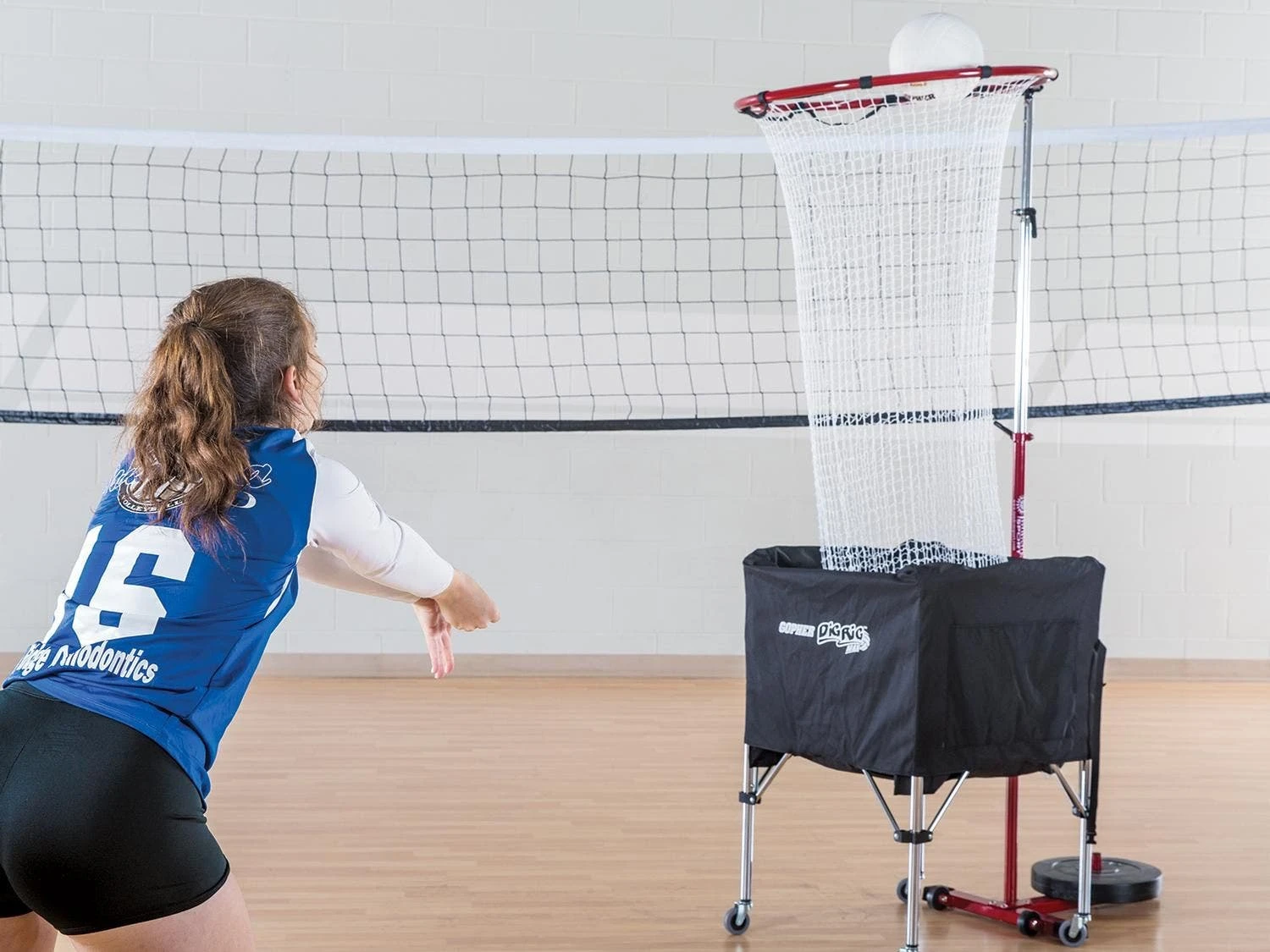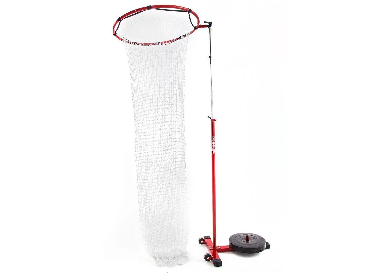 The steel pole on this unique volleyball training tool adjusts up to 12’H and includes a 30″ dia adjustable target for a variety of drills. Place the ring horizontally and use the net for bumping and serving accuracy. The net makes it easy to retrieve balls and keep drills on pace. Remove the net and move the ring vertically for setting and other hitting drills.