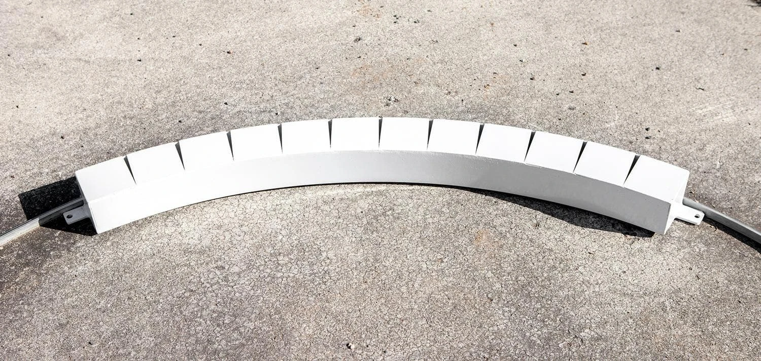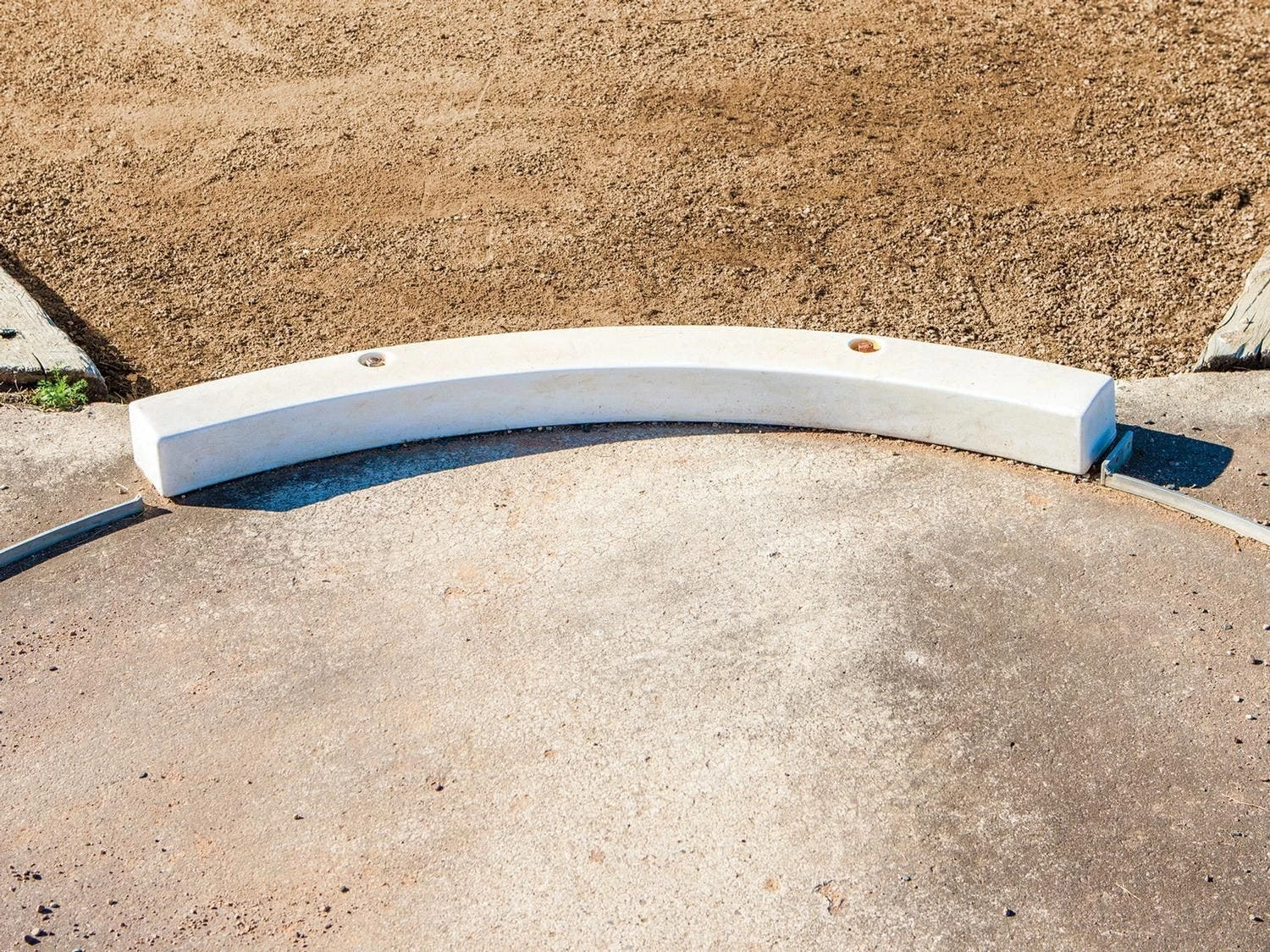 High-quality metal toe boards are perfect to use in the shot put ring. Durable boards will not warp, split, or deteriorate. They feature radiating lines to help with accurate measurements. Fiberglass meets official rule requirements. Hardware not included. 4’L x 4″H.