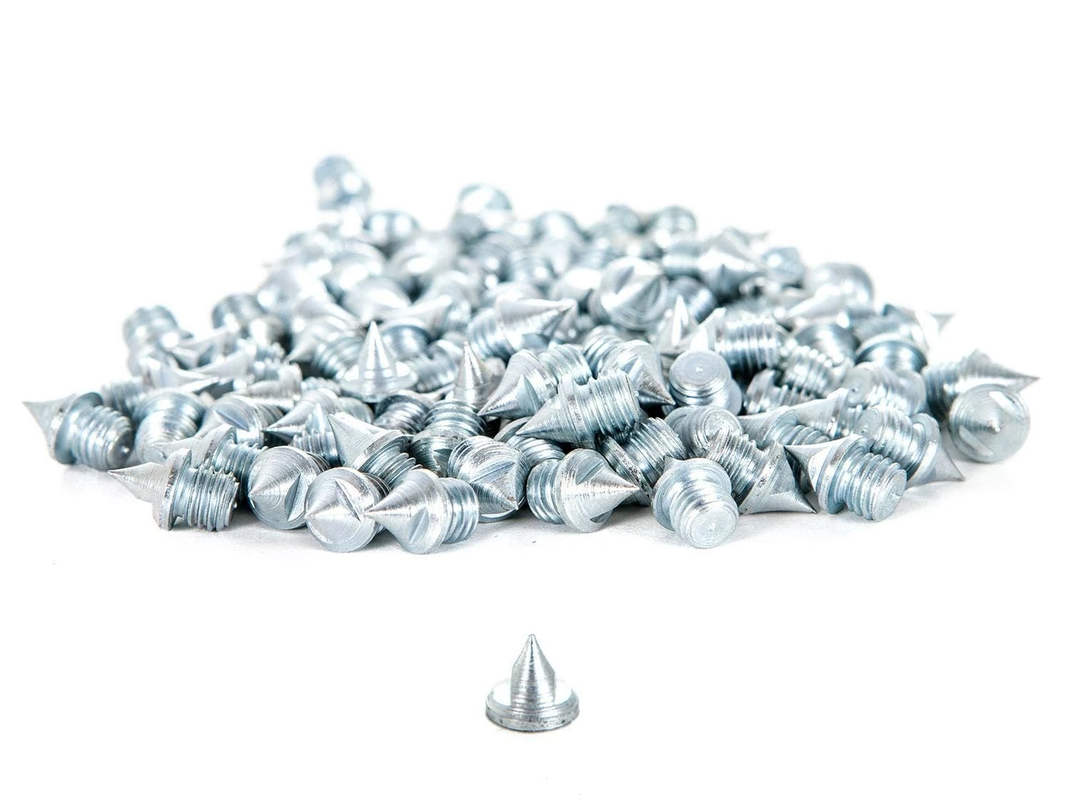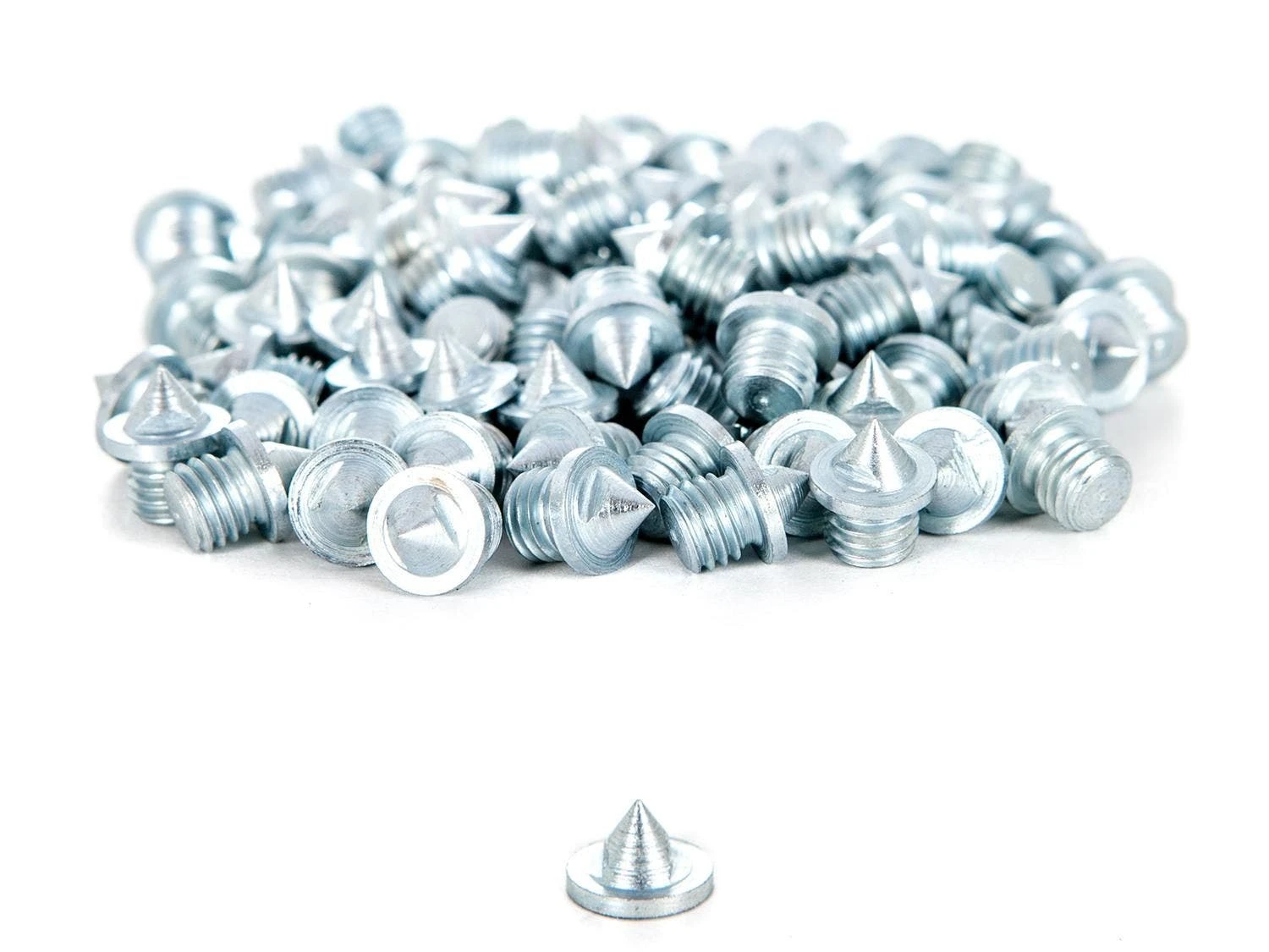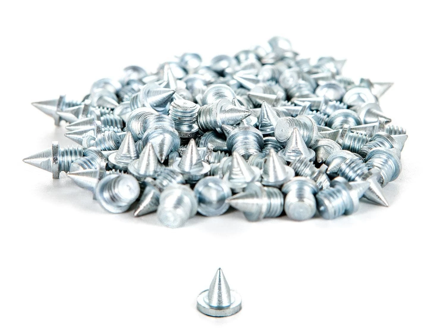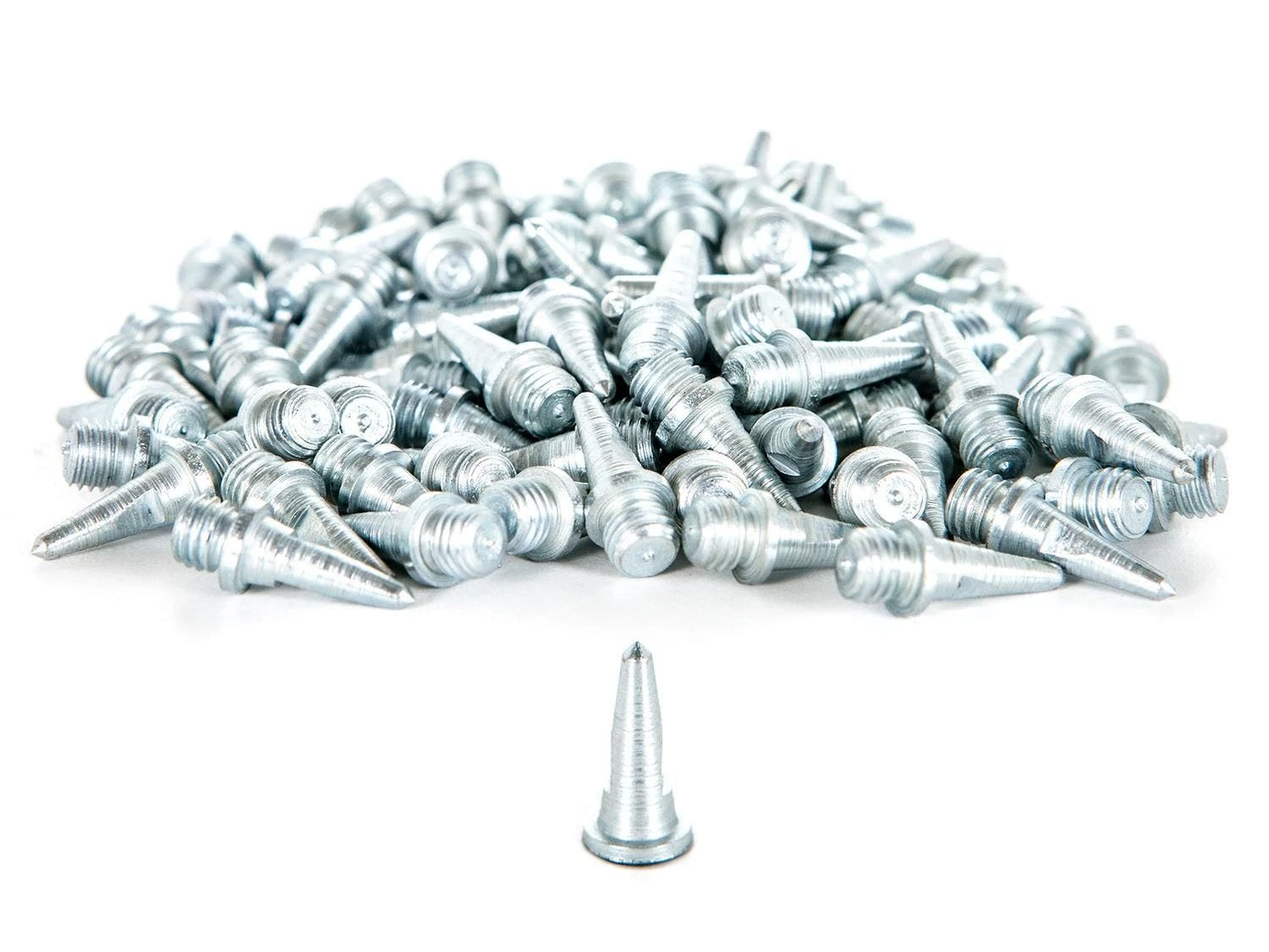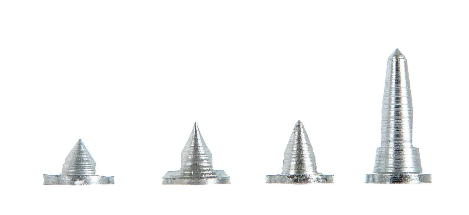 These traditional steel pyramid track spikes will enhance every athlete’s traction, grip, and explosiveness on the track. Each spike is specially heat-treated and zinc-plated for a long-lasting durable finish. Each set of spikes is available in a pack of 100 and comes in a poly bag with corresponding labels. Choose from 1/8″, 1/4″, 3/16″, and 1/2″ pyramid spikes.