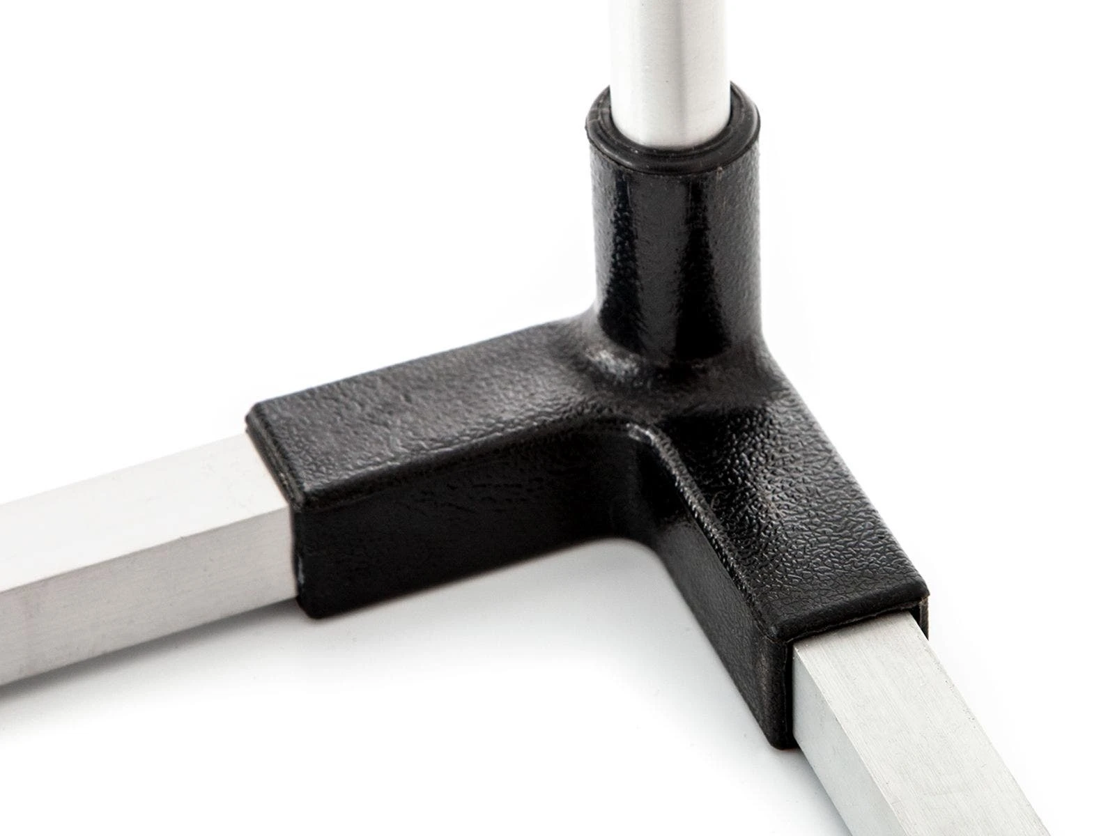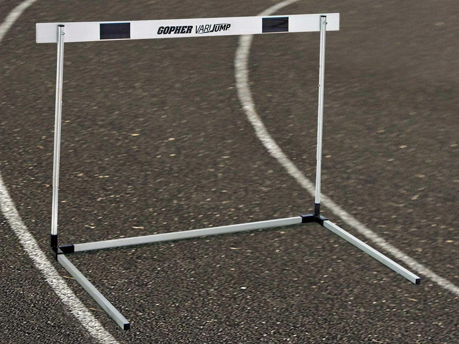 Extremely lightweight aluminum design is easier to transport, yet is heavy enough to not blow over in the wind. Adjust to 5 heights (30″-42″H) for a variety of users. PVC crossbar is 42″W and hurdles stack when not in use for compact storage. Each hurdle is 42″W x 30″D; 4 lb.